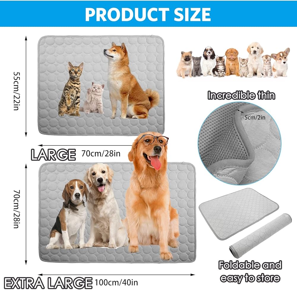 • ✿ مصممة للكلاب/القطط الكبيرة والمتوسطة والصغيرة: مقاس حصيرة تبريد الحيوانات الأليفة 27.5 × 39.0 بوصة (للكلاب/القطط أقل من 30 رطل)، 0.6 رطل/27.5 × 19.7 بوصة (للكلاب أقل من 80 رطل)، 0.35 رطل. تم تصميم بساط التبريد ذو الحجم الكبير القابل للعكس خصيصًا للكلاب التي يتراوح وزنها بين 10 إلى 80 رطلاً. إنها حصيرة ثلج مثالية للتبريد الذاتي للحيوانات الأليفة في الصيف.