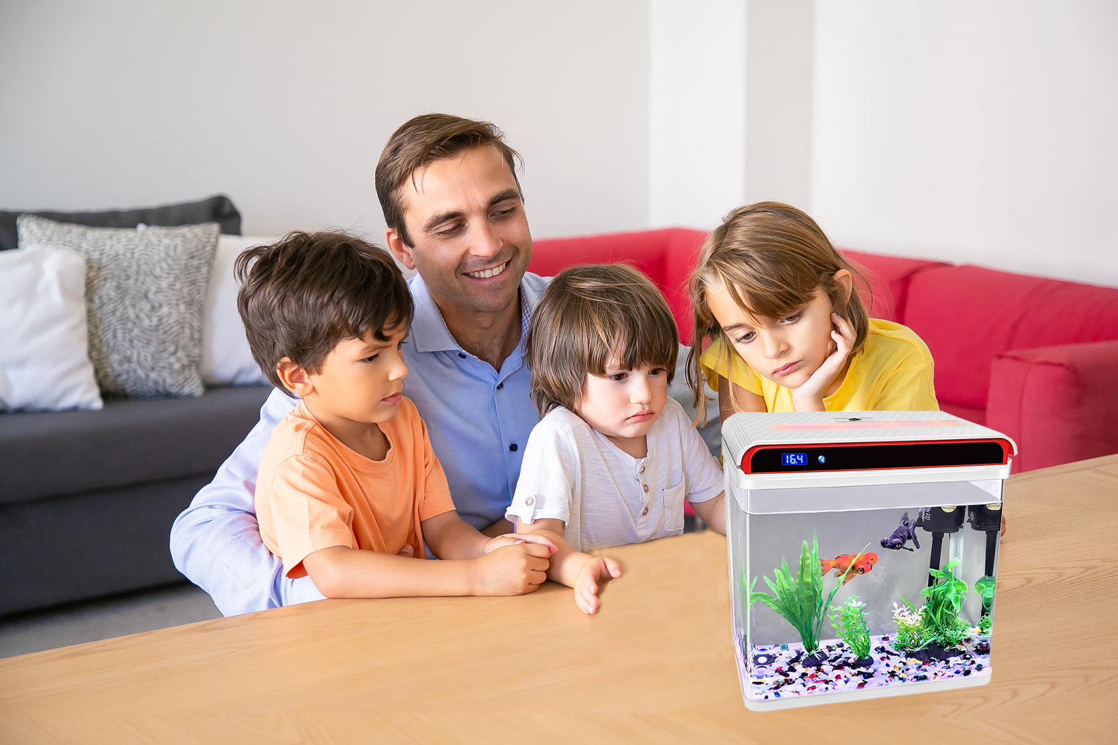 يتميز حوض السمك ZHIBANG بعرض ذكي لدرجة الحرارة، والذي يمكنه فهم درجة حرارة الماء الحقيقية والعناية بصحة الأسماك المحبوبة