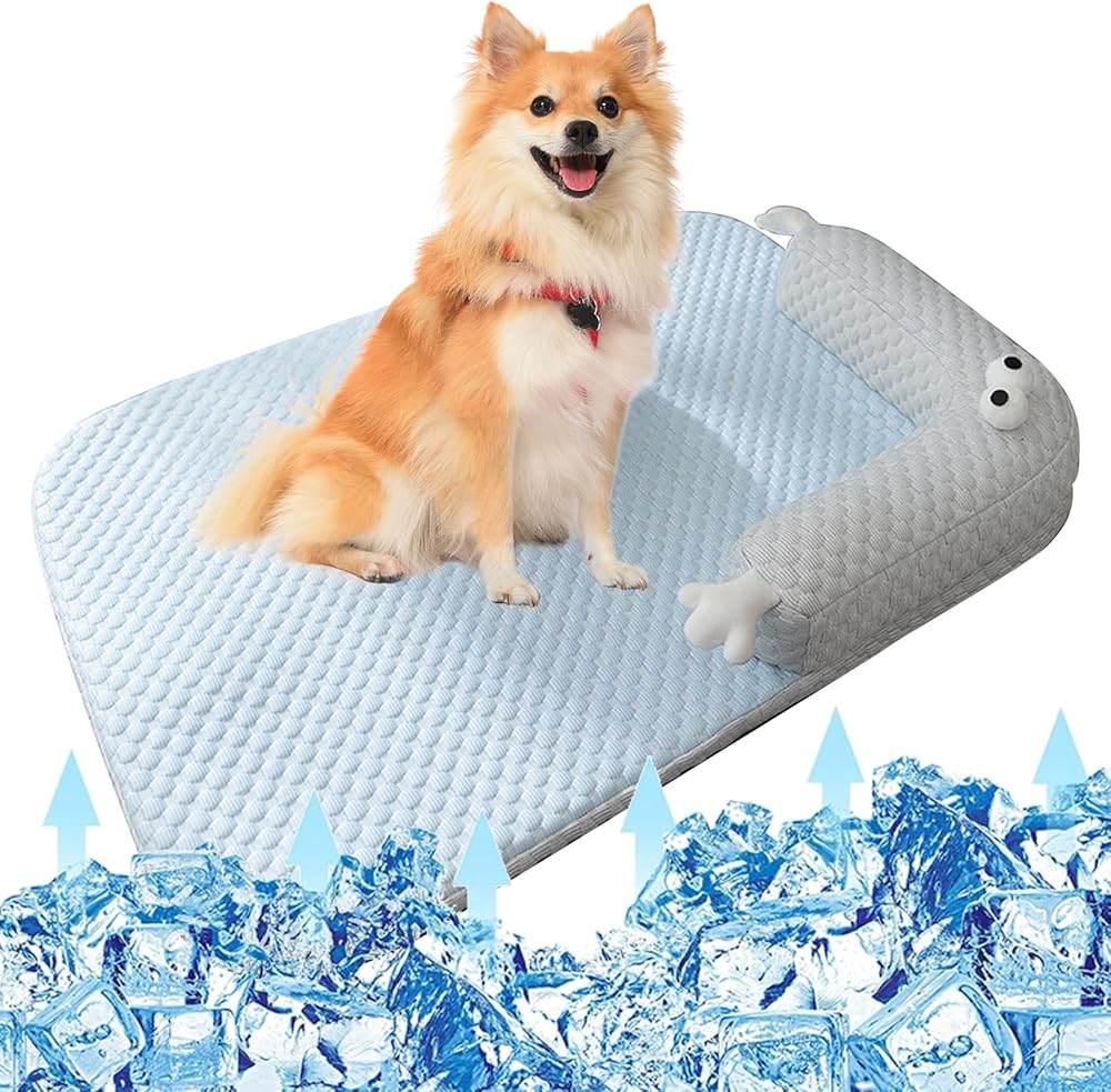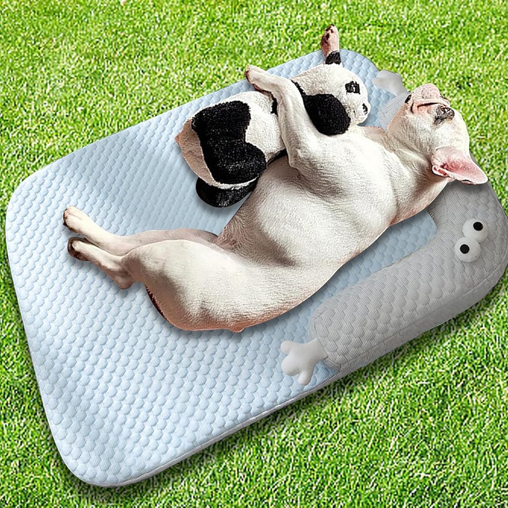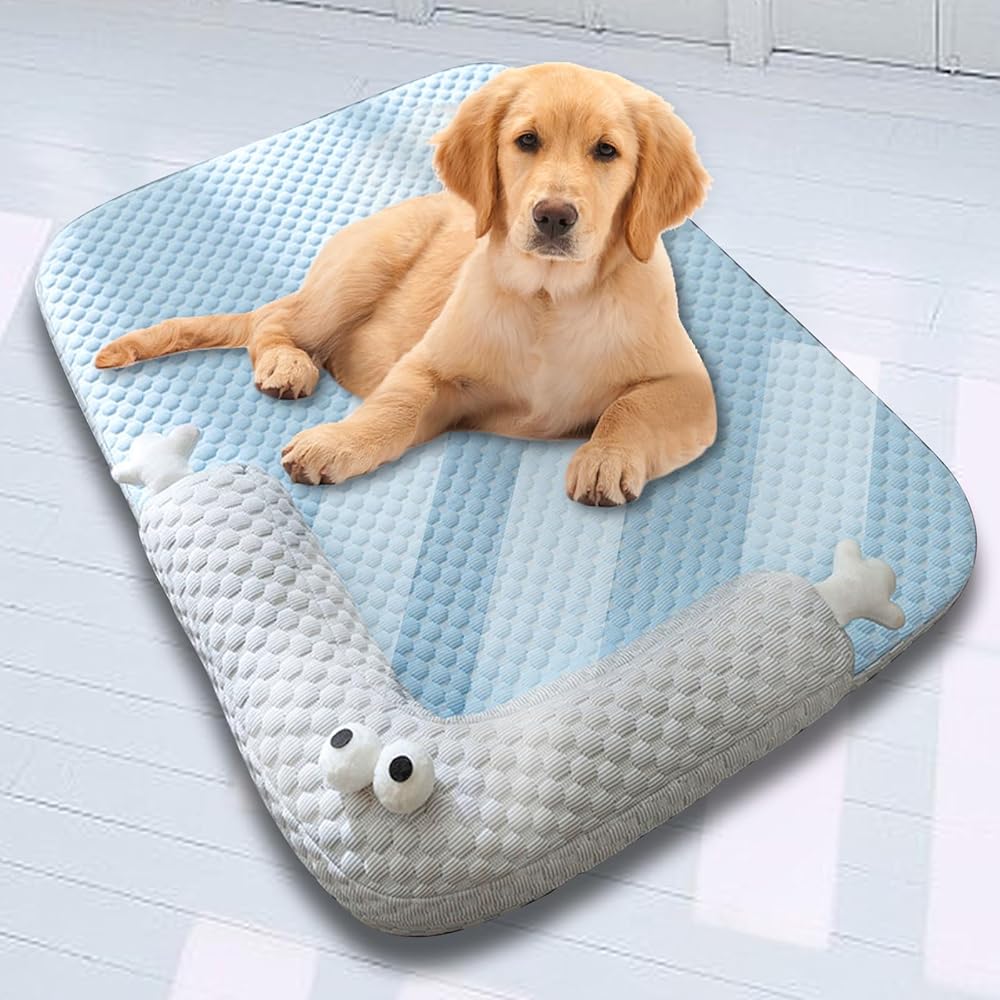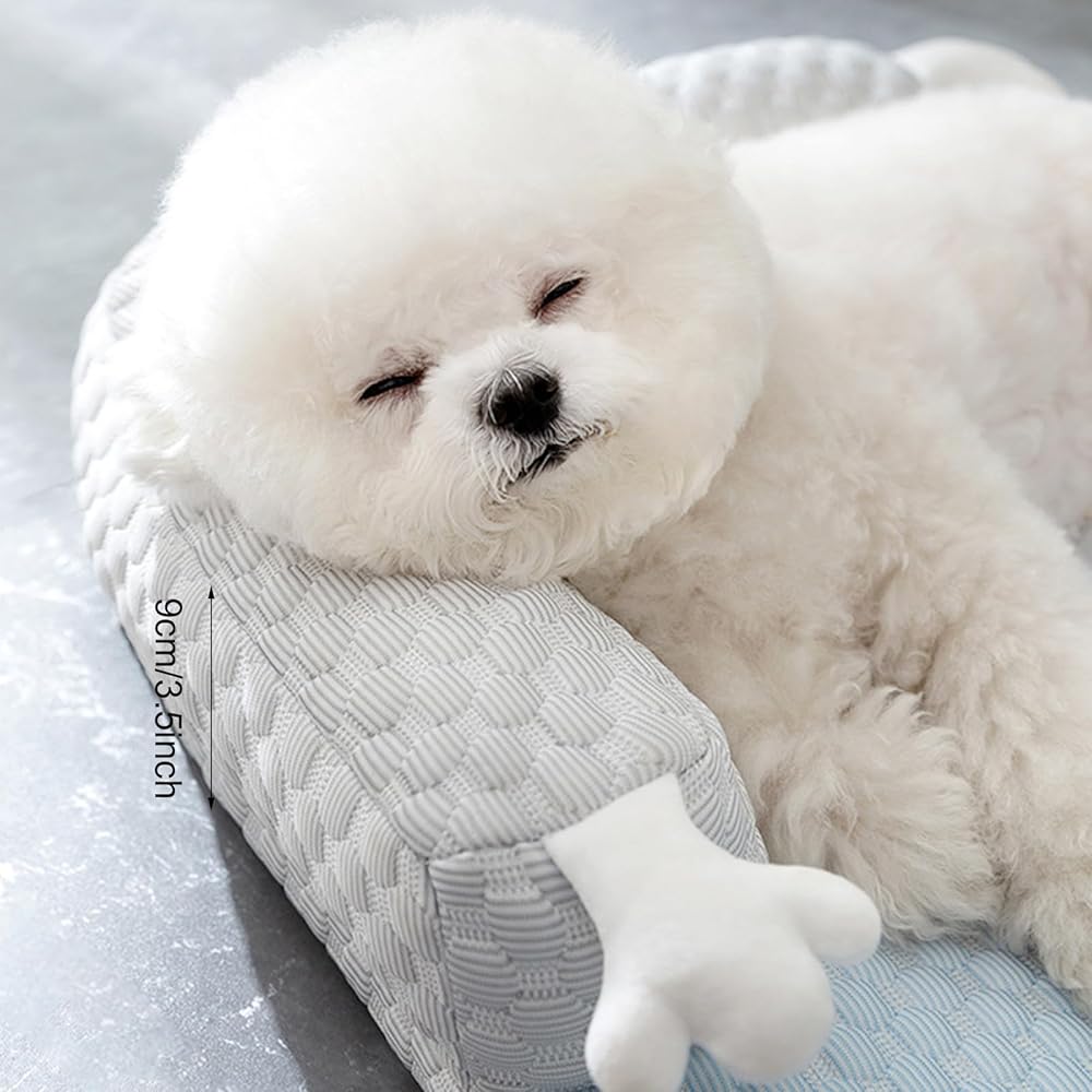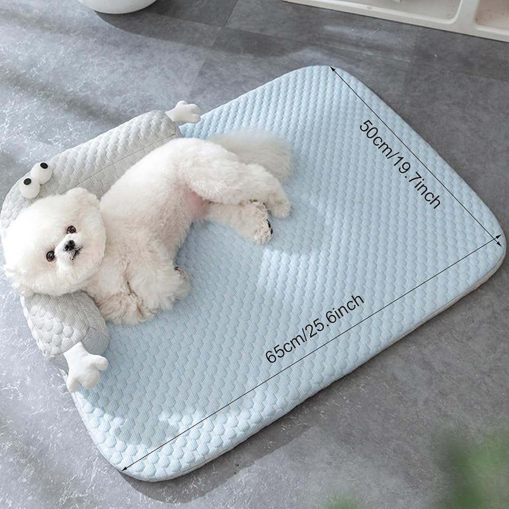 Dog Cooling Mat, Non Slip and Washable Cooling Dog Bed, Dog Cushion Pad with Pillow Suitable for Small and Medium-Sized Dogs, for Indoor and Outdoor Use