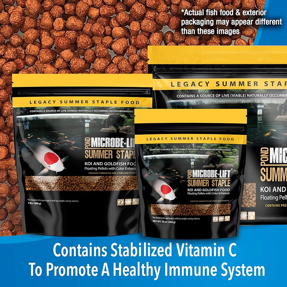 PERFECT FOR WARM WEATHER FEEDING: Microbe-Lift Summer Staple Fish Food Pellets provide great nutrition and energy for koi and goldfish; This food is optimized for warmer summer and late spring temperatures with added protein for growth and energy