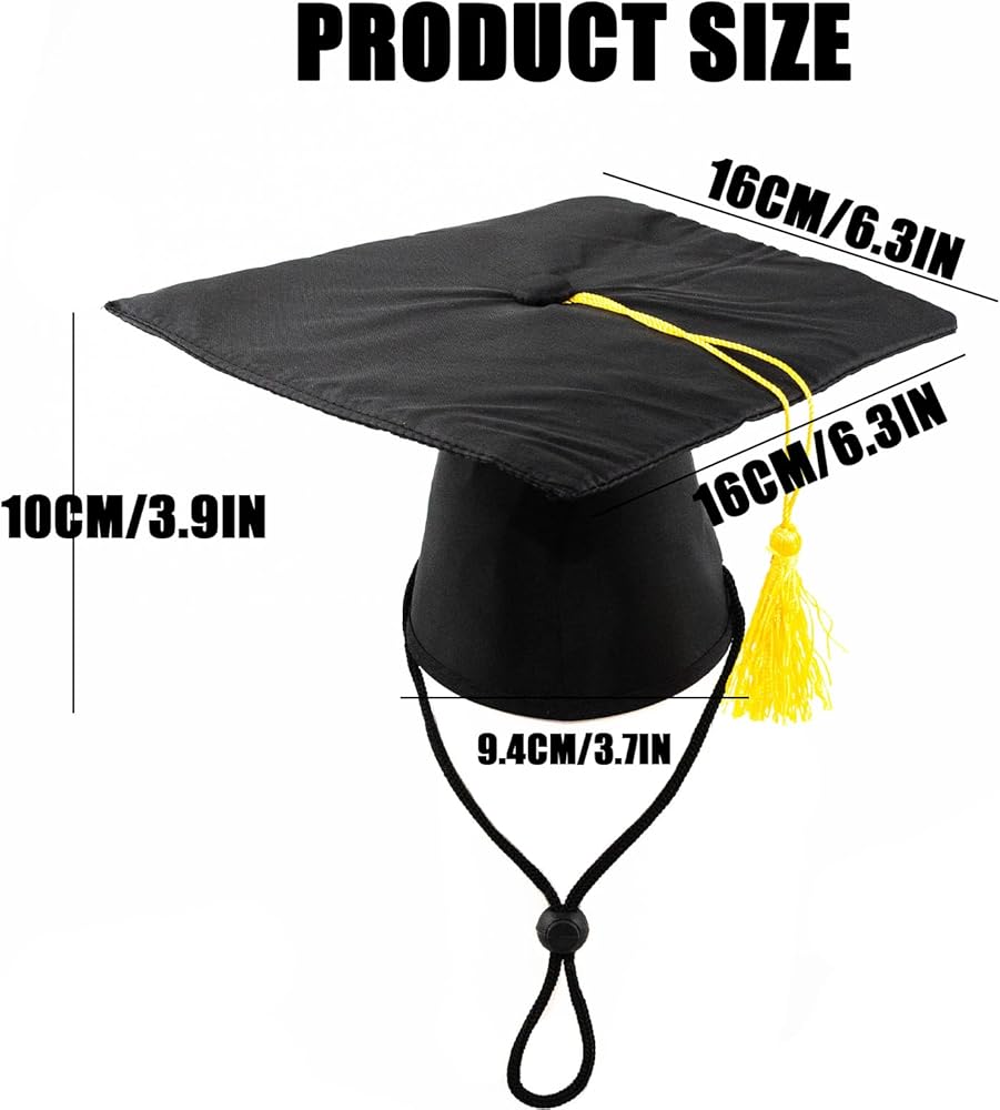 ADJUSTABLE STRAP: The elastic chin strap fixed at the bottom of the mini graduation hat is easy for your pet to wear or take off. The adjustable band is comfortable and firm to wear and the cap will not come off easily.