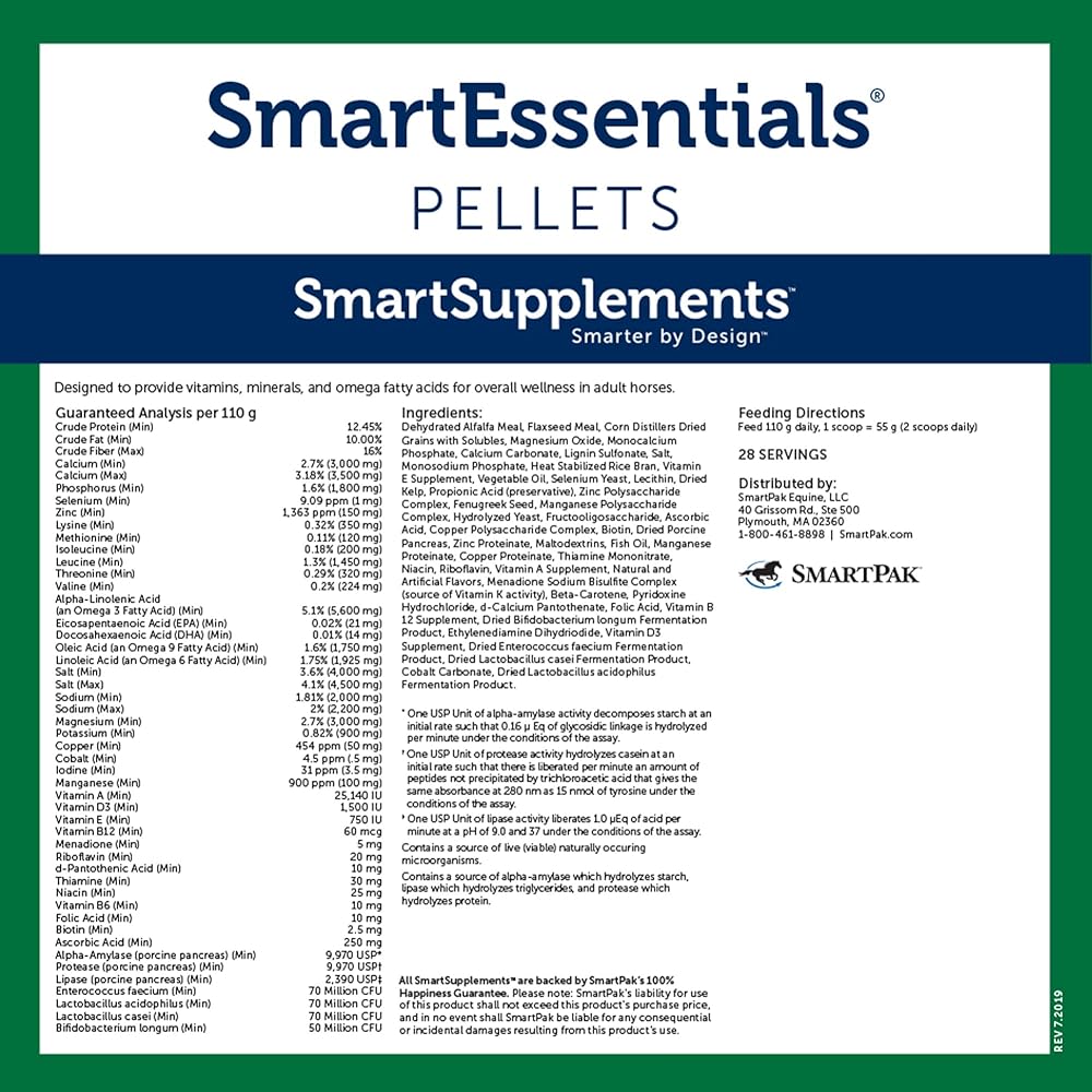 أساسيات التغذية SmartPak SmartPak | مكمل غذائي للخيول | يحتوي على الفيتامينات الأساسية والمعادن والأحماض الأمينية وأوميغا 3 | يساعد على تحسين صحة الجلد وفرو الحصان