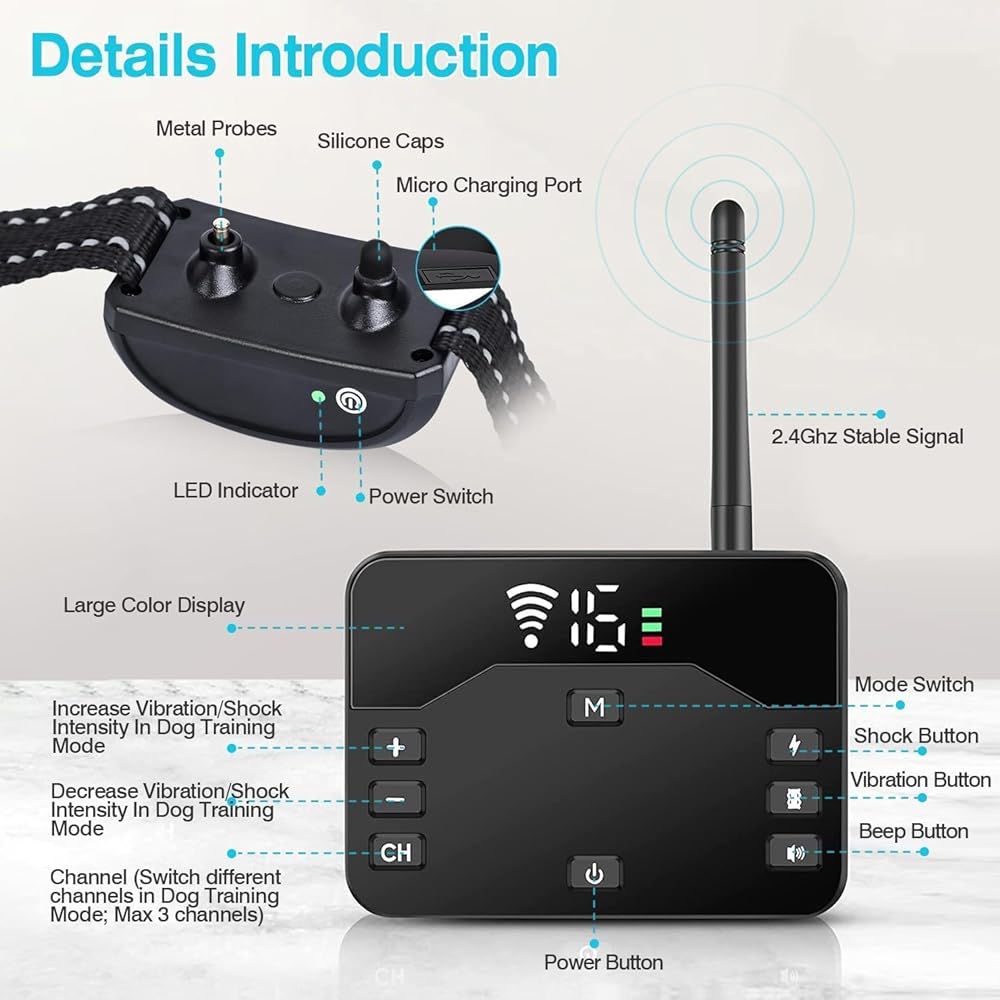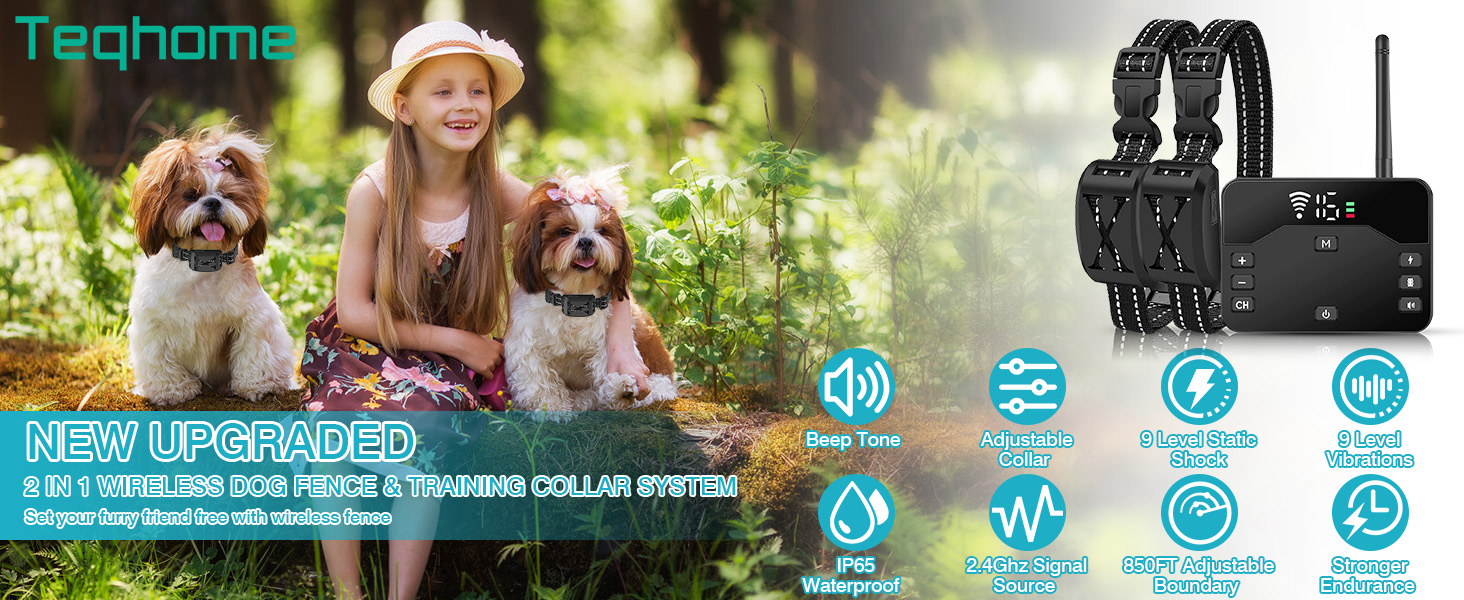 【نظام سياج الكلاب اللاسلكي المذهل】- يعمل السياج الكهربائي للكلاب والتدريب بشكل جيد جدًا؛ نظام سياج الكلاب اللاسلكي TeqHome هو أحدث إصدار، يجمع بين وظيفتين؛ باستخدام أحدث مصدر إشارة 2.4 جيجا هرتز، فإن طوق الصدمات المحيطي للكلب أكثر دقة واستقرارًا من نقل إشارات WIFI القديمة الأخرى، مما يساعد على تدريب حيوانك الأليف وتشكيل عادات السلامة الجيدة.