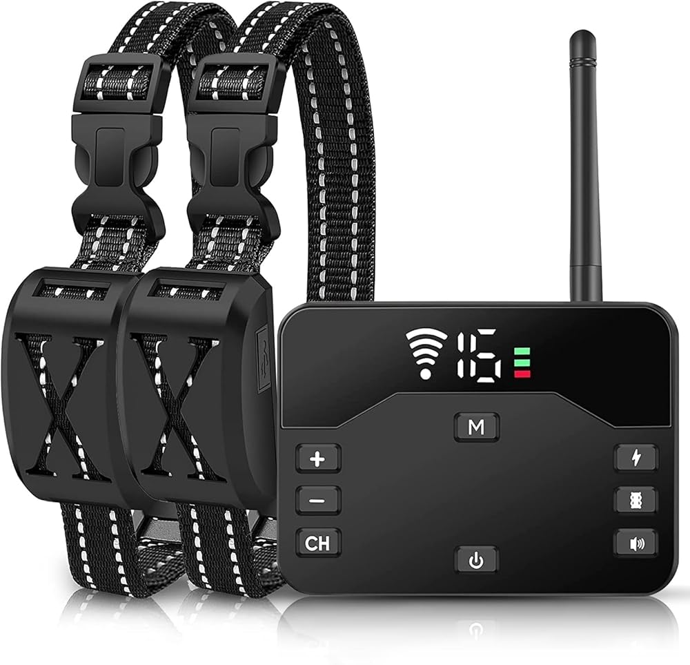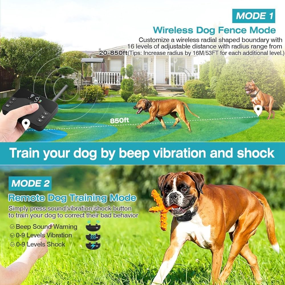 سياج لاسلكي للكلاب، نظام سياج كهربائي 2 في 1 لكلبين مع طوق تدريب وجهاز تحكم عن بعد، IP65 مقاوم للماء، نظام جديد لاحتواء الحيوانات الأليفة الآمن لجميع الكلاب، يغطي مساحة تصل إلى 8 فدان (20-850 قدمًا)