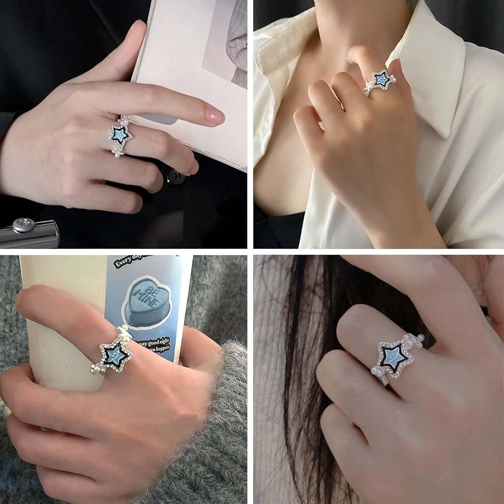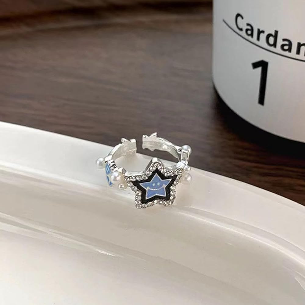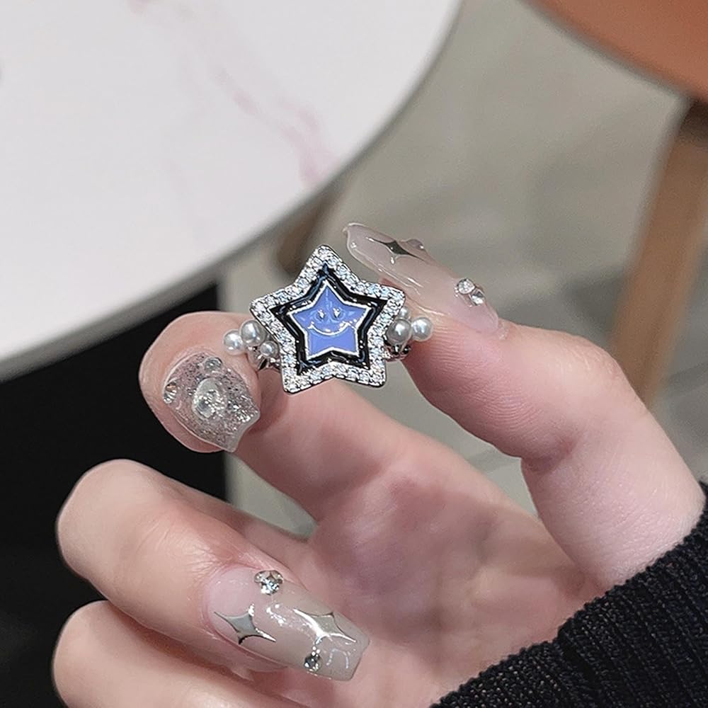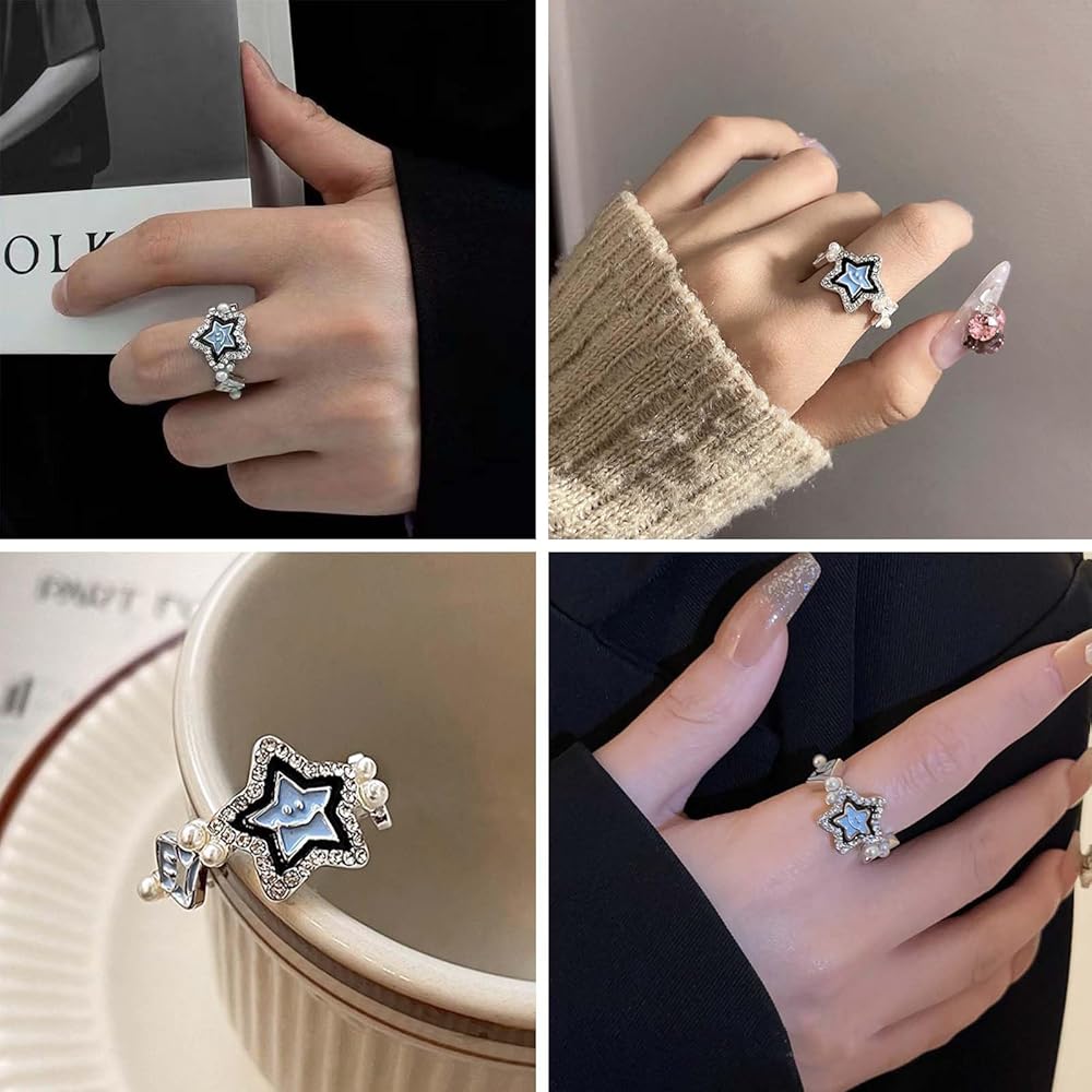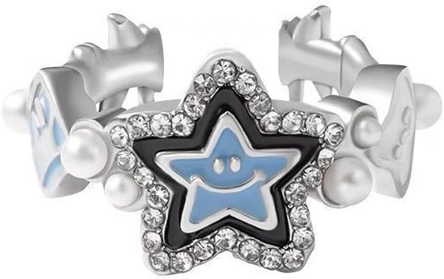 بوهو كريستال ستار الدائري للفتيات في سن المراهقة لؤلؤة المفصل الدائري ابتسامة ستار التراص الدائري لاكي ستار البنصر تشيكوسلوفاكيا ستار حلقة مفتوحة لذيذ قابل للتعديل خاتم مجوهرات للنساء الهدايا