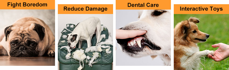 تساعد في تنظيف الفم - ألعاب المضغ العدوانية للكلاب التي تمضغ بقوة من السلالات الكبيرة يمكنها التحكم في لوحة أسنان الكلاب وجير الأسنان، وتخفيف إزعاج التسنين والحفاظ على الصحة البدنية. أضف معجون أسنان على الجزء المطاطي من لعبة الكلاب شديدة التحمل ولعبة الكلاب فائقة المضغ للسلالات الكبيرة، ثم دع كلبك يمضغ أفضل ألعاب الكلاب للمضغين العدوانيين وعظام الكلاب للمضغين العدوانيين على أكمل وجه، مما يمكن أن يساعد بشكل كبير في تنظيف الأسنان، والقضاء على الأوساخ وتجديد التنفس.