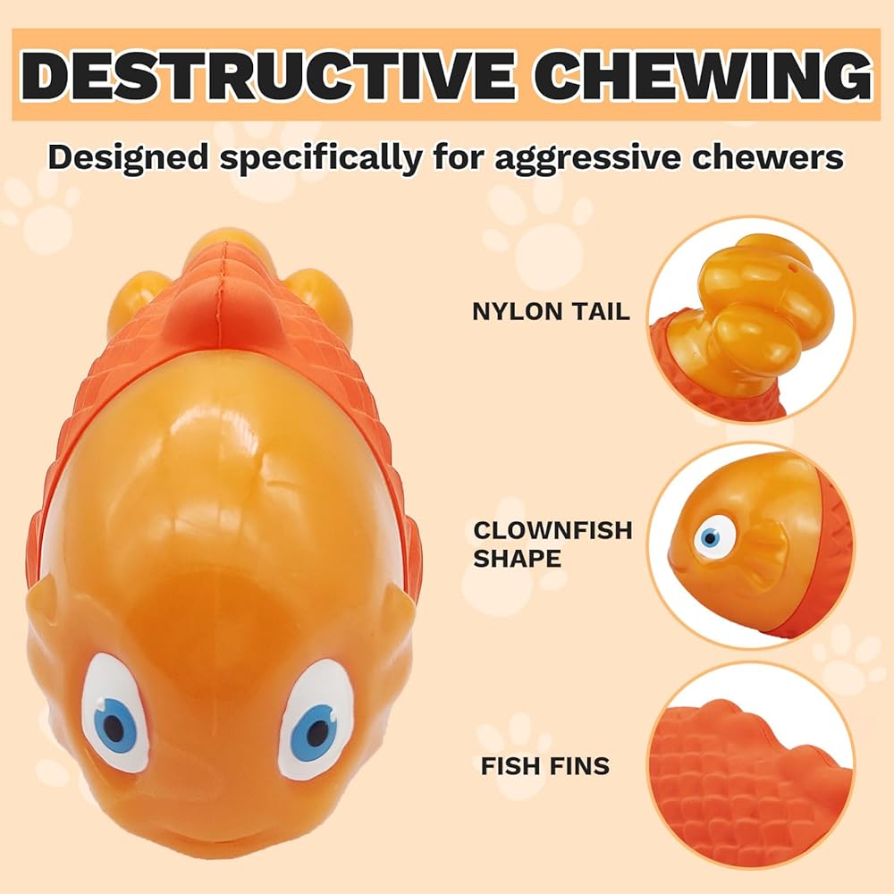 ألعاب ممتعة للكلاب ذات صرير - مع تصميم صوتي مدمج، يمكن لألعاب الكلاب التي تصدر صريرًا للمضغين العدوانيين وألعاب المضغ العدوانية للكلاب الكبيرة أن تجذب انتباه الكلاب وتحفز اهتمامها بسهولة، مما سيساعد على إطالة وقت المضغ واستهلاك طاقتها. علاوة على ذلك، فإن اللون البرتقالي الزاهي وألعاب الكلاب التي تصدر صريرًا على شكل سمكة المهرج وألعاب الكلاب القوية للمضغين العدوانيين تجعل من السهل على الكلاب التعرف عليها، وتجعل الكلاب أكثر حماسًا وتوفر المزيد من المرح لتخفيف الملل لساعات.