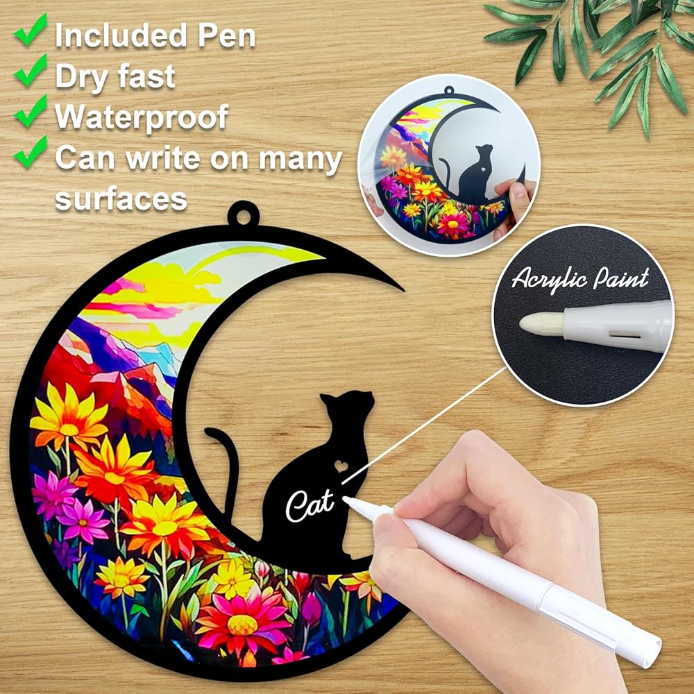 • 【مادة جيدة】صُنعت أداة التقاط الشمس التذكارية للكلاب هذه من الخشب والأكريليك الصديق للبيئة. نظام الألوان جريء وقوي، والنمط واضح، والمواد الأفضل يمكنها التقاط ضوء الشمس بشكل أفضل. اجعل عاطفة إحياء ذكرى كلبك أكثر حدة.