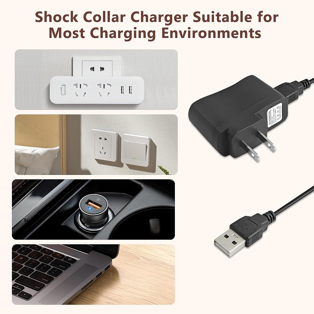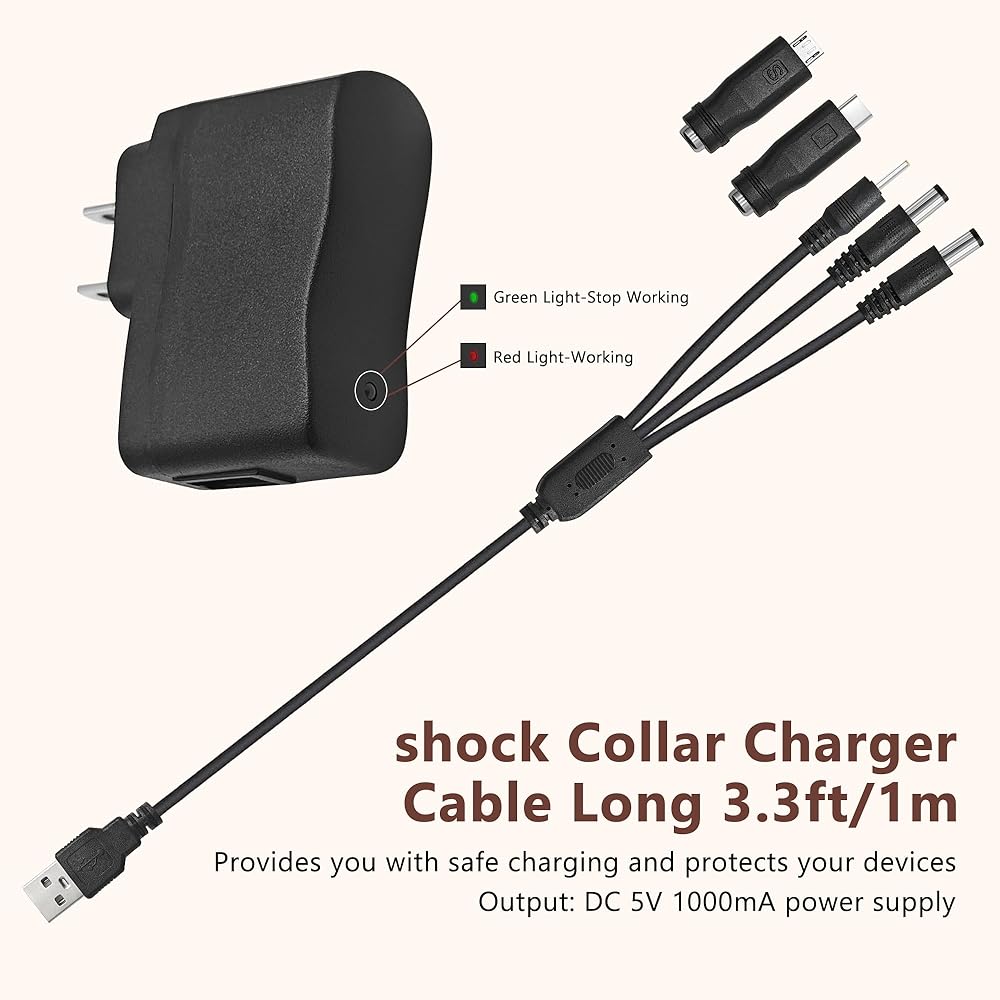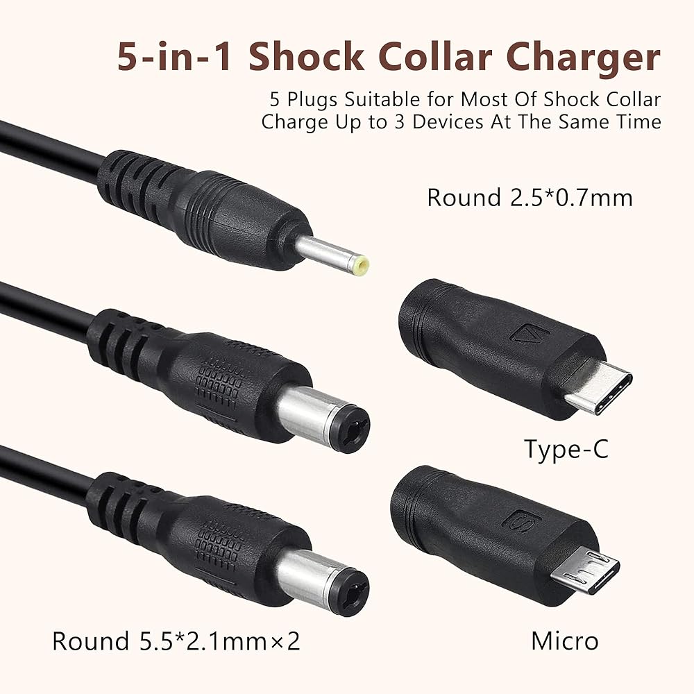 شاحن طوق الصدمات شاحن طوق E متوافق مع Dogrook، Mini Educator، Flittor، PetSpy، Petsafe، PetTech، PET998، Pettrainer Dog Shock Collar وأنظمة التدريب الأخرى، شاحن طوق النباح 5 في 1