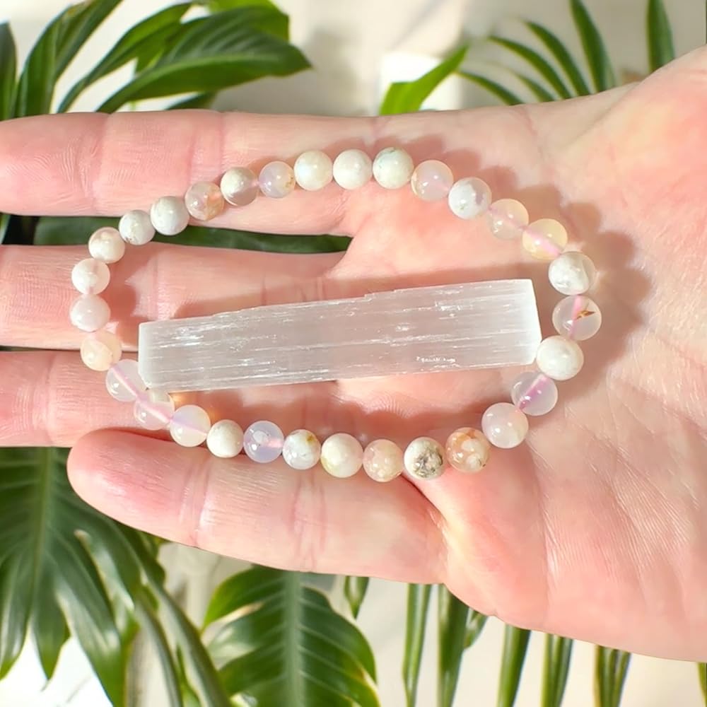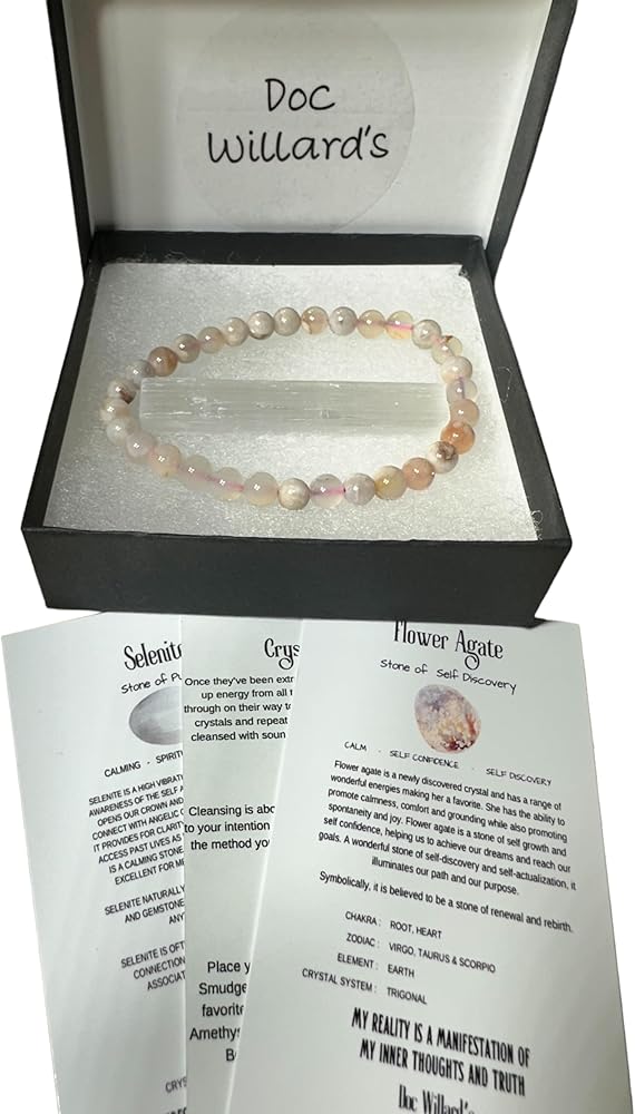 • The Perfect Gift: This flower agate crystal bracelet gift set comes with additional raw selenite and informational cards making it the perfect present for those interested in crystals.