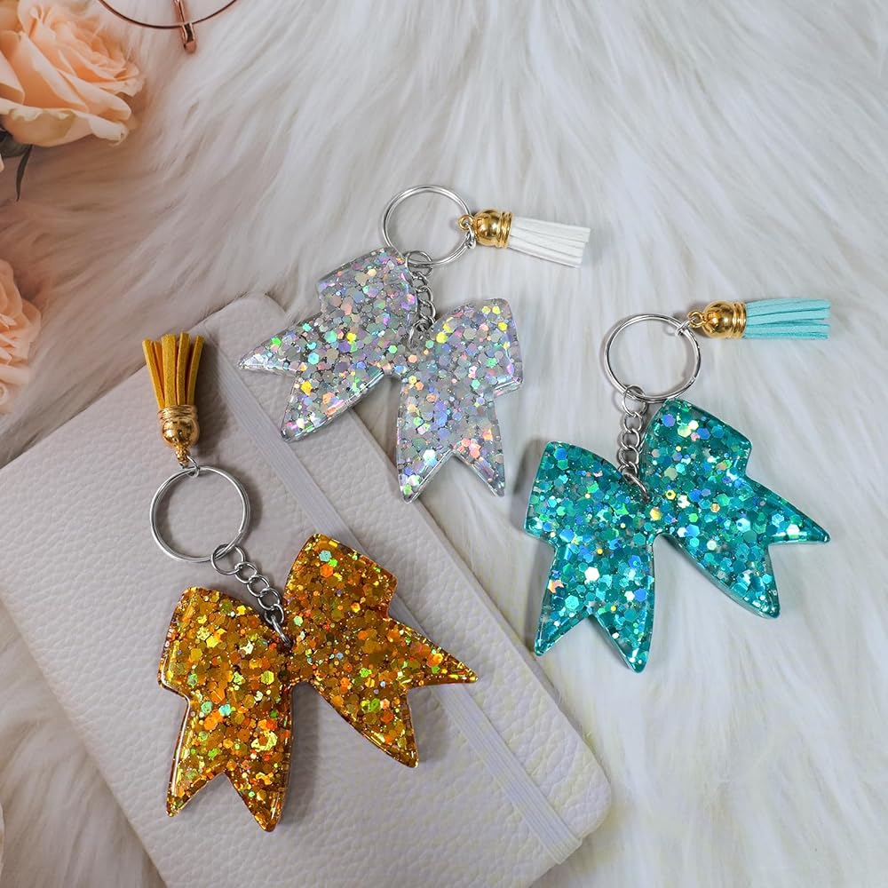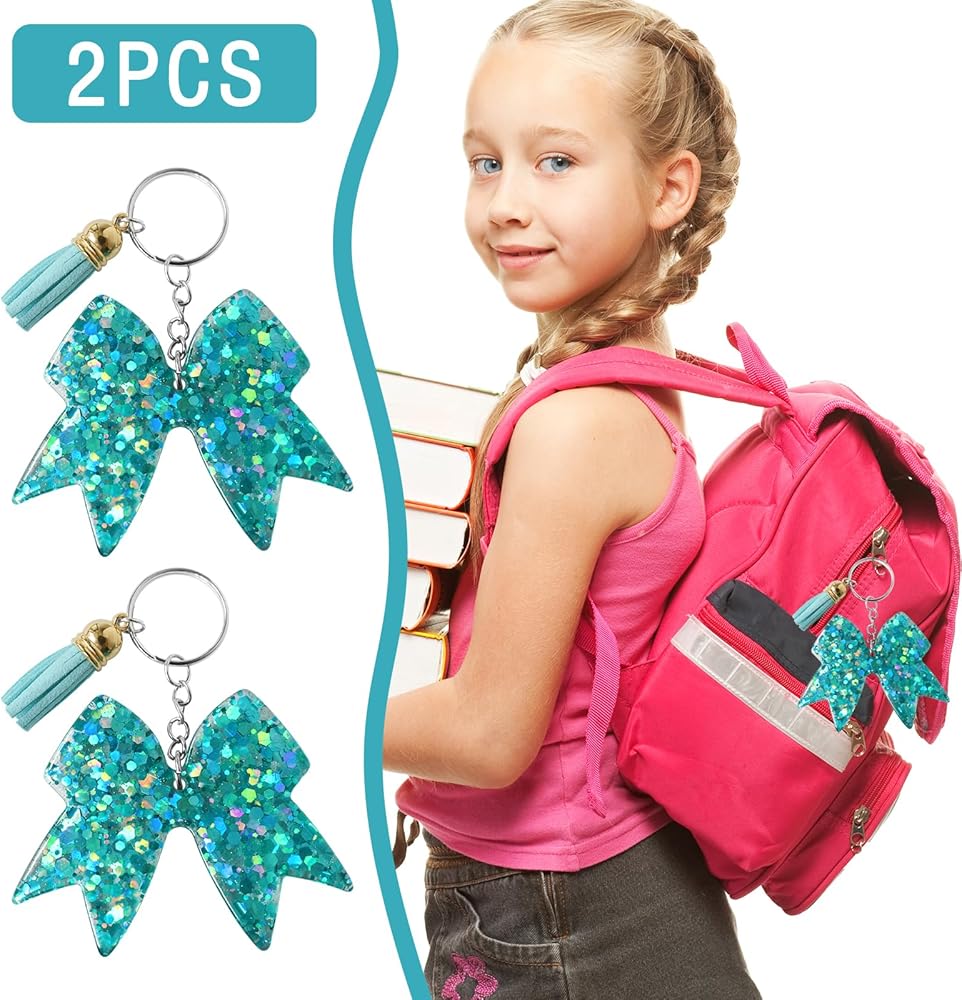 【سلسلة مفاتيح تشجيع للفتيات】أضف لمسة من البهجة إلى مفاتيحك مع سلسلة مفاتيح التشجيع الخاصة بنا للفتيات. تتميز سلسلة المفاتيح الرائعة هذه بتصميم فيونكة ساحرة وشرابة نابضة بالحياة، مما يجعلها إكسسوارًا مثاليًا للمشجعات الصغار.