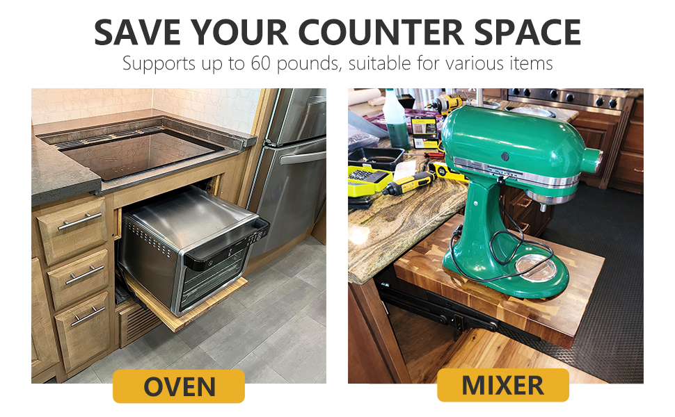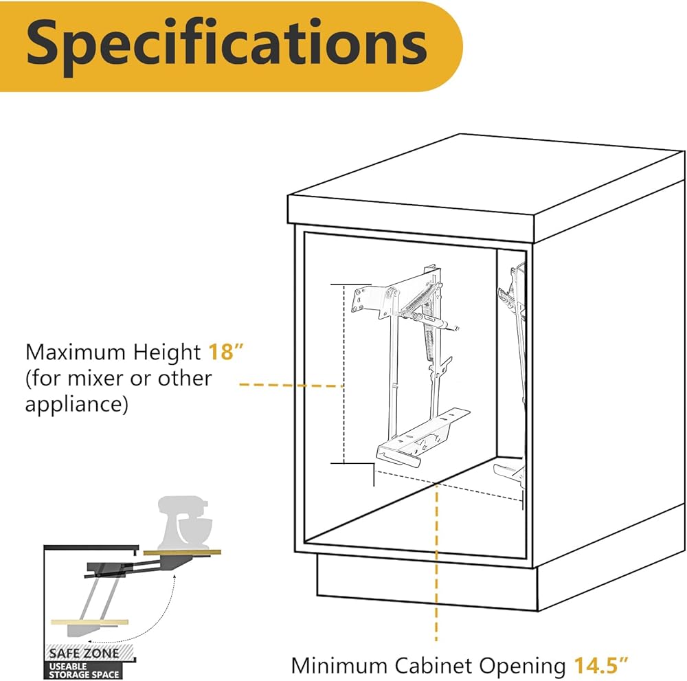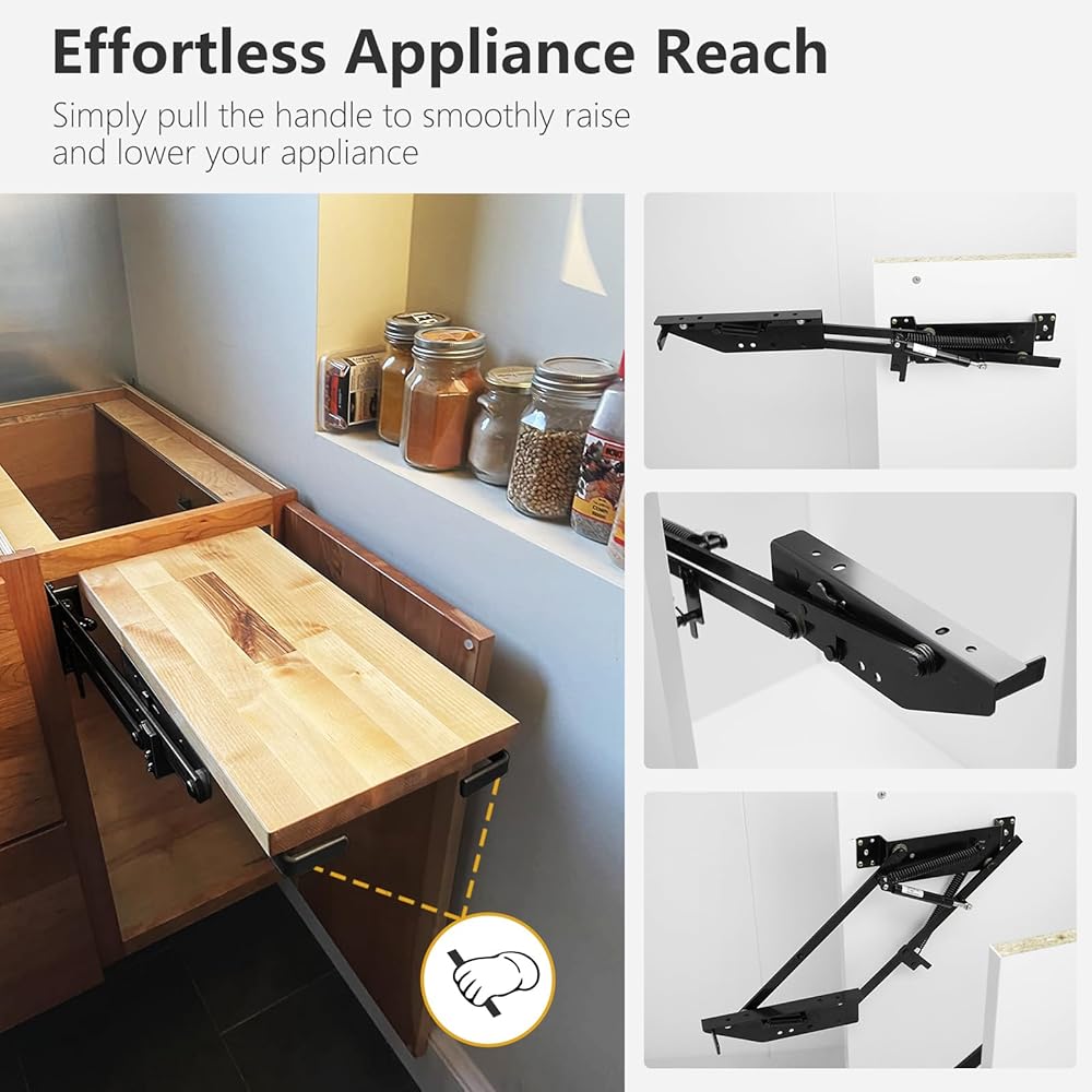 رافعة خلاط أجهزة المطبخ للخزانة، رافعة الأجهزة مع آلية زنبركية ذاتية القفل لأجهزة المطبخ الصغيرة