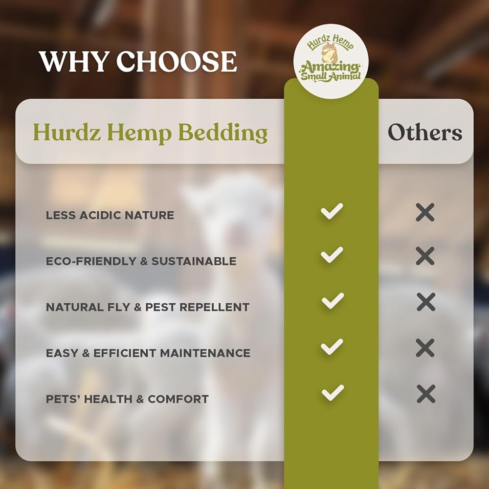 • ❤𝗣𝗘𝗧𝗦' 𝗛𝗘𝗔𝗟𝗧𝗛 & 𝗖𝗢𝗠𝗙𝗢𝗥𝗧 𝗙𝗜𝗥𝗦𝗧- عندما يتعلق الأمر بصحة حيواناتك الأليفة وراحتها، ثق في Hurdz Hemp. تضمن أغطية السرير الصغيرة الخالية من الغبار الخاصة بنا التخلص من مشكلات الجهاز التنفسي، مما يوفر طبقة آمنة ومريحة للراحة واللعب. على عكس نشارة الصنوبر الرخيصة، فإن فراش الهامستر الصديق للبيئة لدينا أقل حمضية، مما يوفر راحة مثالية للحيوانات الأليفة التي تعاني من الحساسية.