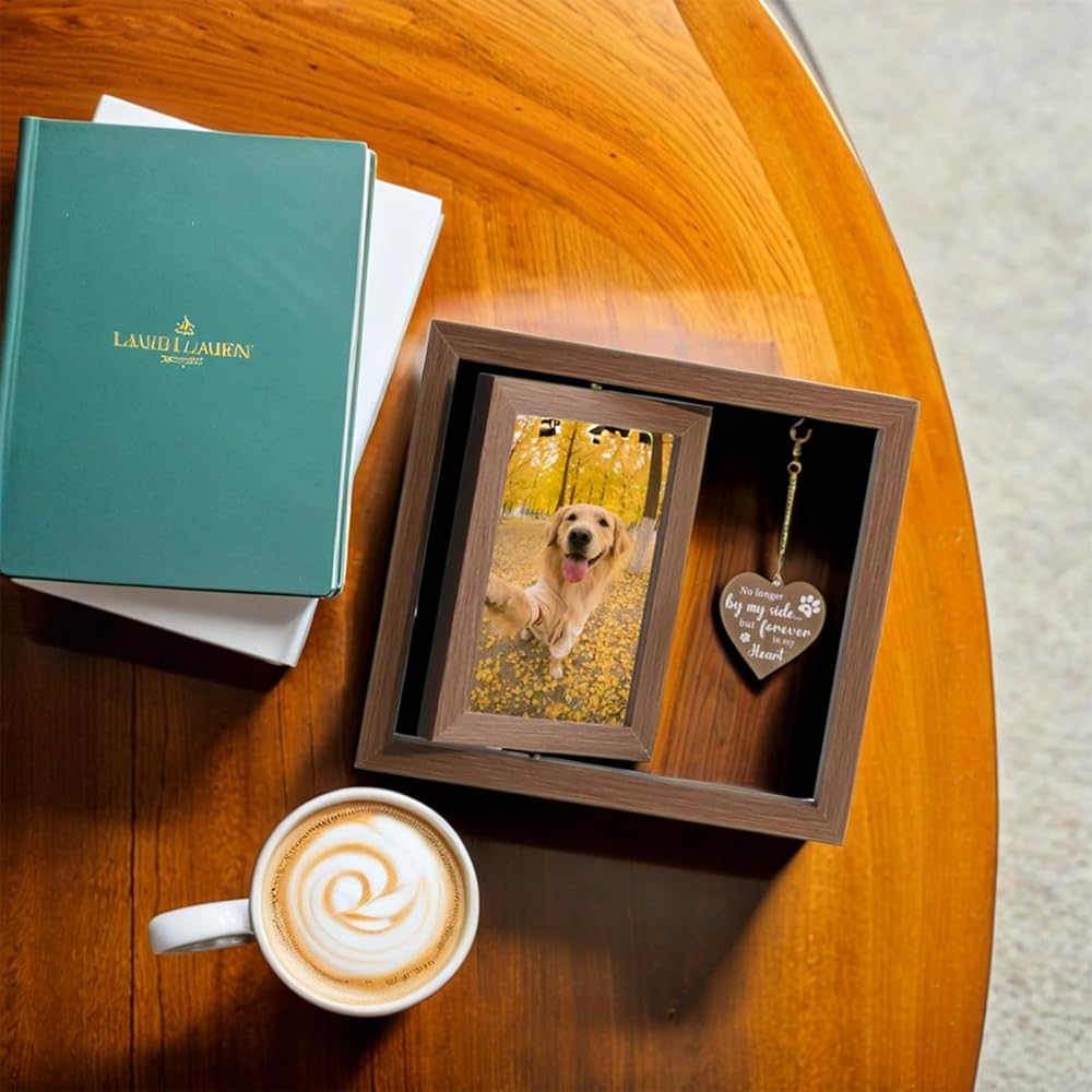 【هدايا تذكارية لفقدان الحيوانات الأليفة】 "لم يعد بجانبي، ولكن إلى الأبد في قلبي." الحيوانات الأليفة هي عائلتنا الأبدية. إطار الصورة التذكاري للكلاب هذا هو هدية تذكارية جميلة للحيوانات الأليفة، مثالي للهدايا التذكارية للكلاب أو القطط، أو هدية تعاطف مع فقدان أي صديق فقد صديقه المكسو بالفراء مؤخرًا.