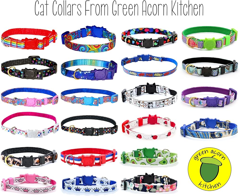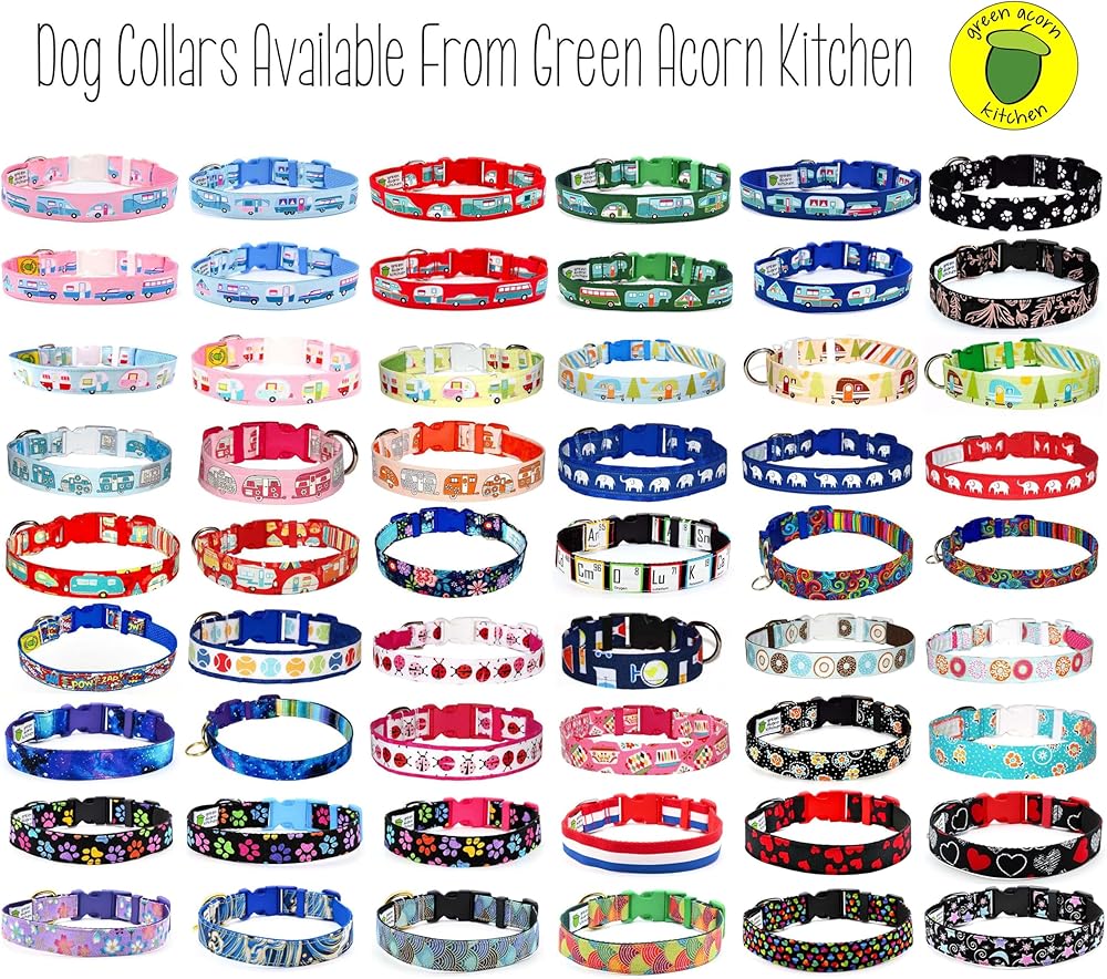 Matching dog collars can be found in the Green Acorn Kitchen storefront, type B077JFVWMX in the Amazon search box.