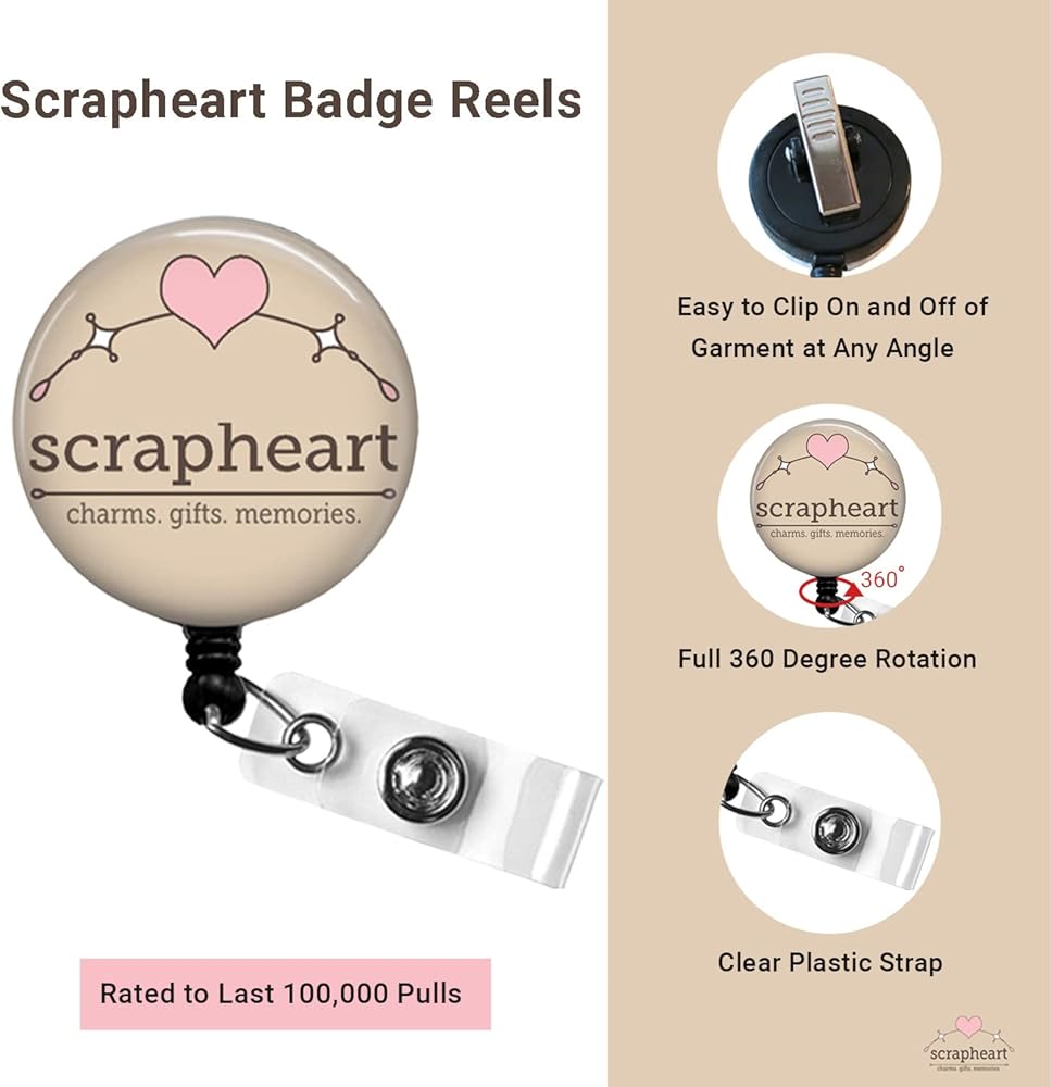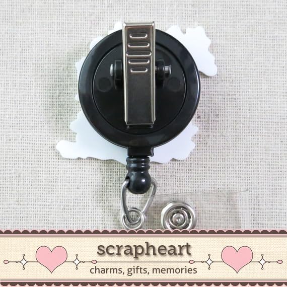 BADGE INFO: Standard-sized retractable reel with an acrylic design topper measuring 1.5 x 1.75 inches so it's not bulky, yet always right where you need it; Attached acrylic piece simply wipes clean.