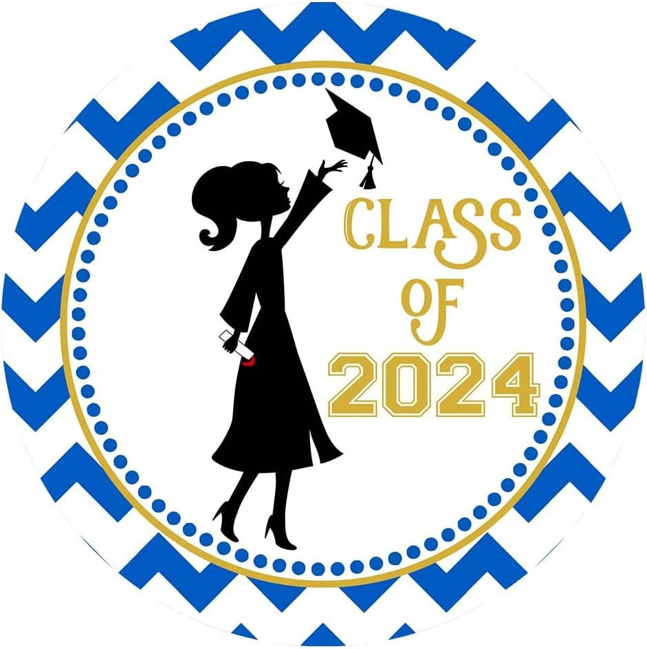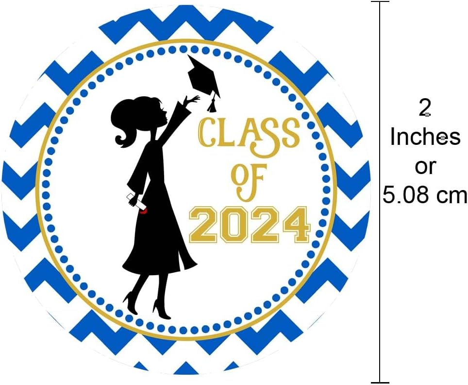 In a set, you will receive cute 30 (Thirty) Class of 2024 Graduation Sticker Labels in blue with a girl tossing her cap. Let's celebrate your milestone! You can use them to adorn your favors.