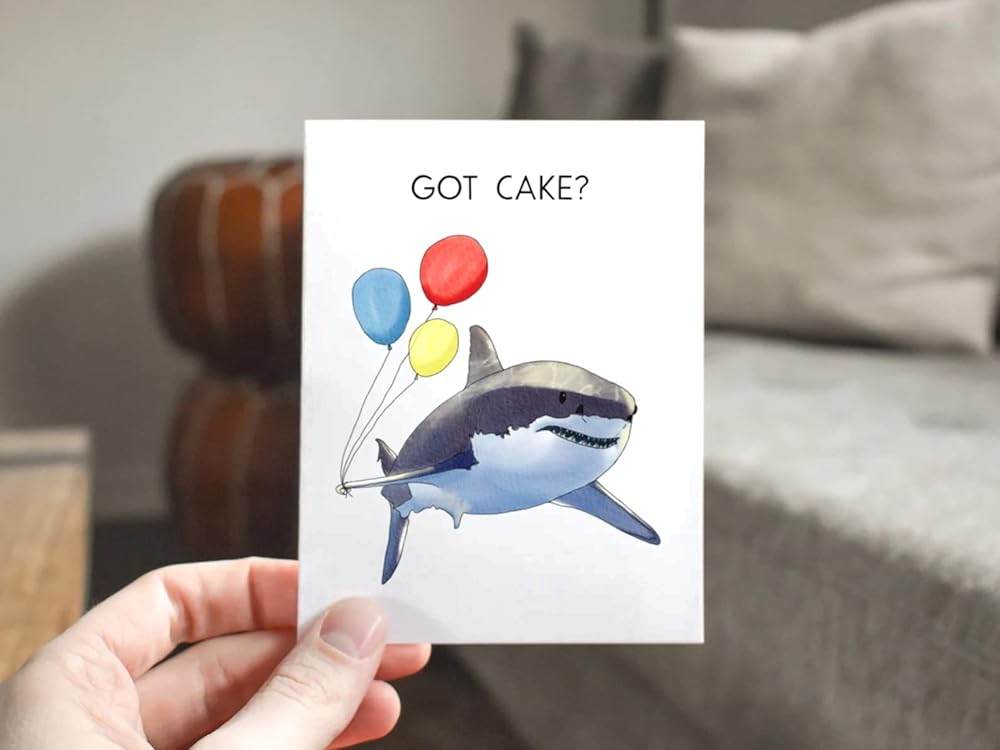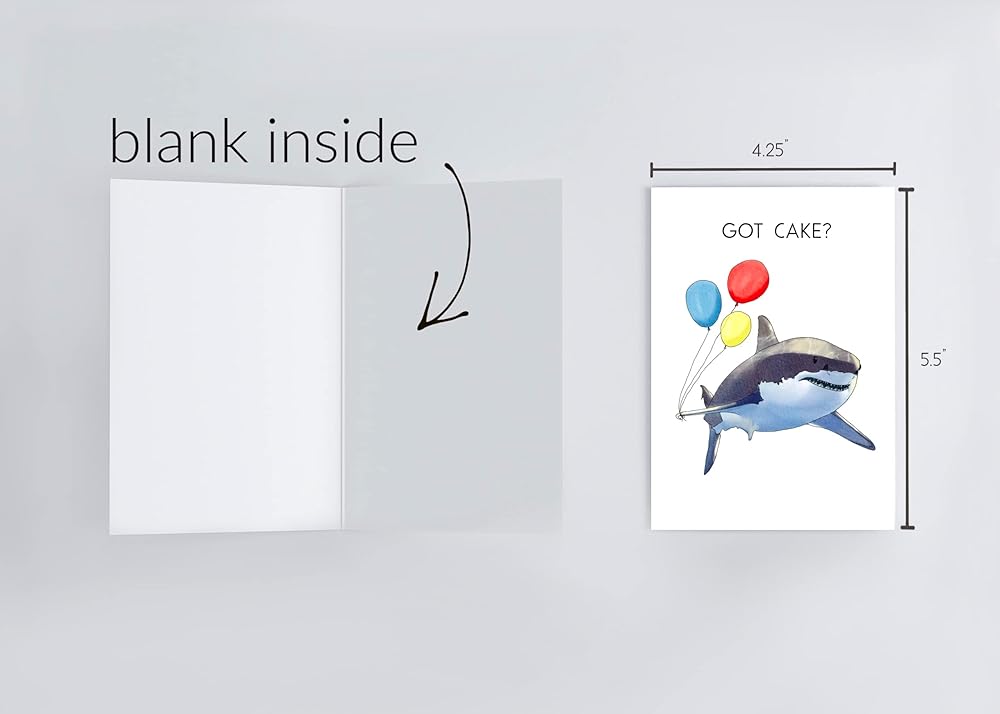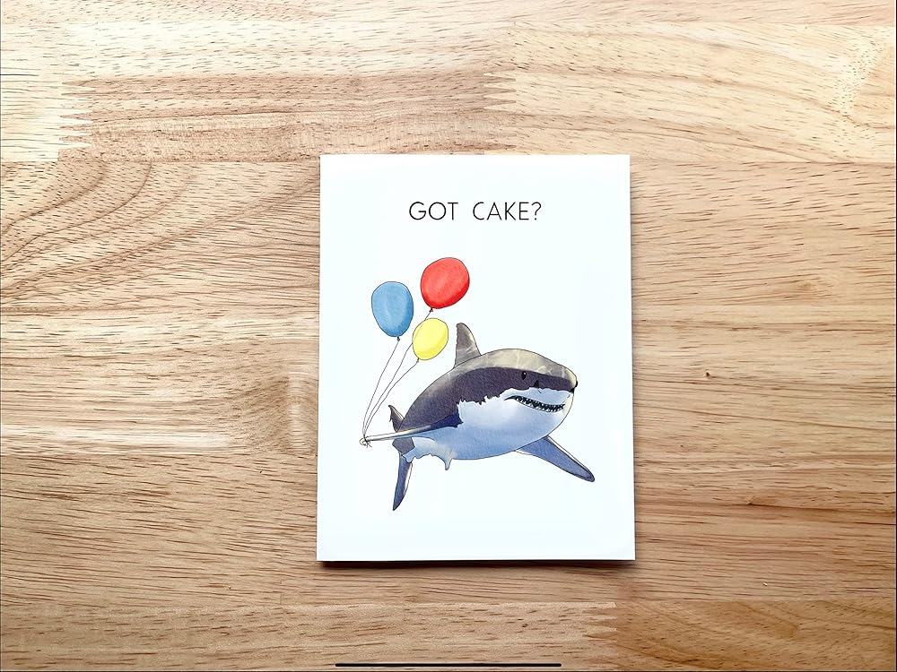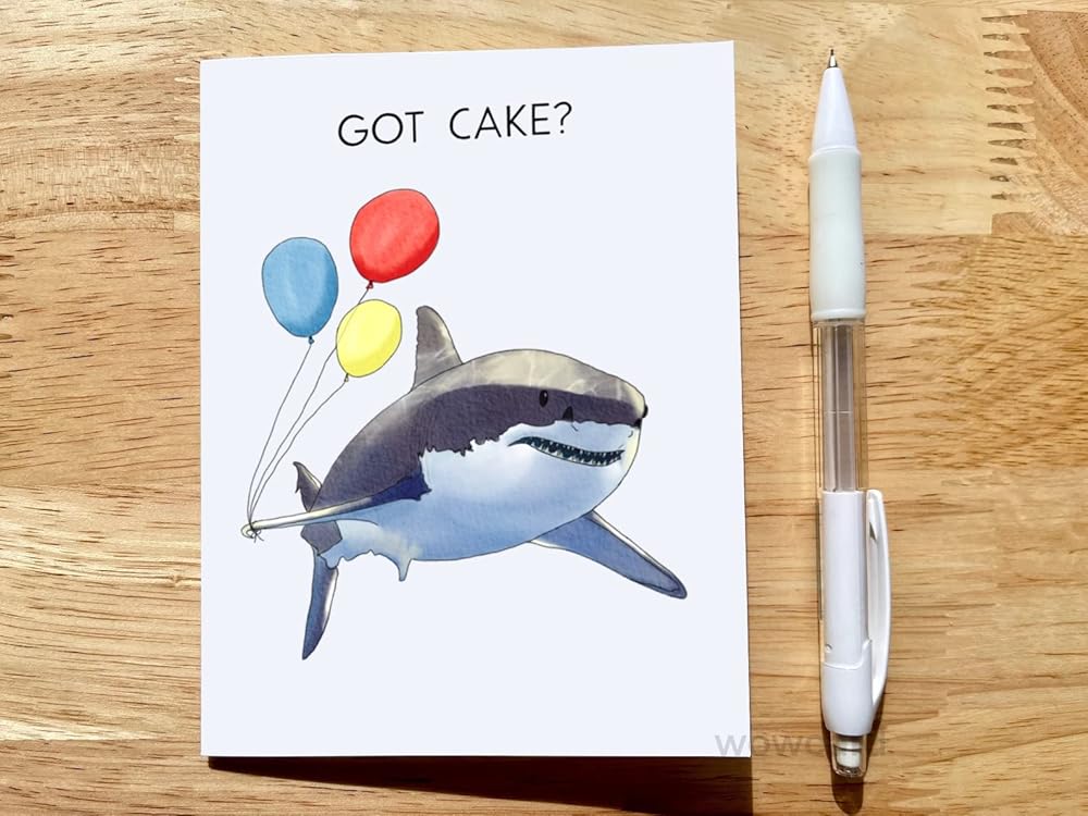 GOT CAKE? Cute shark with ballon came for the cake. It's a cute birthday card for any ages and gender!