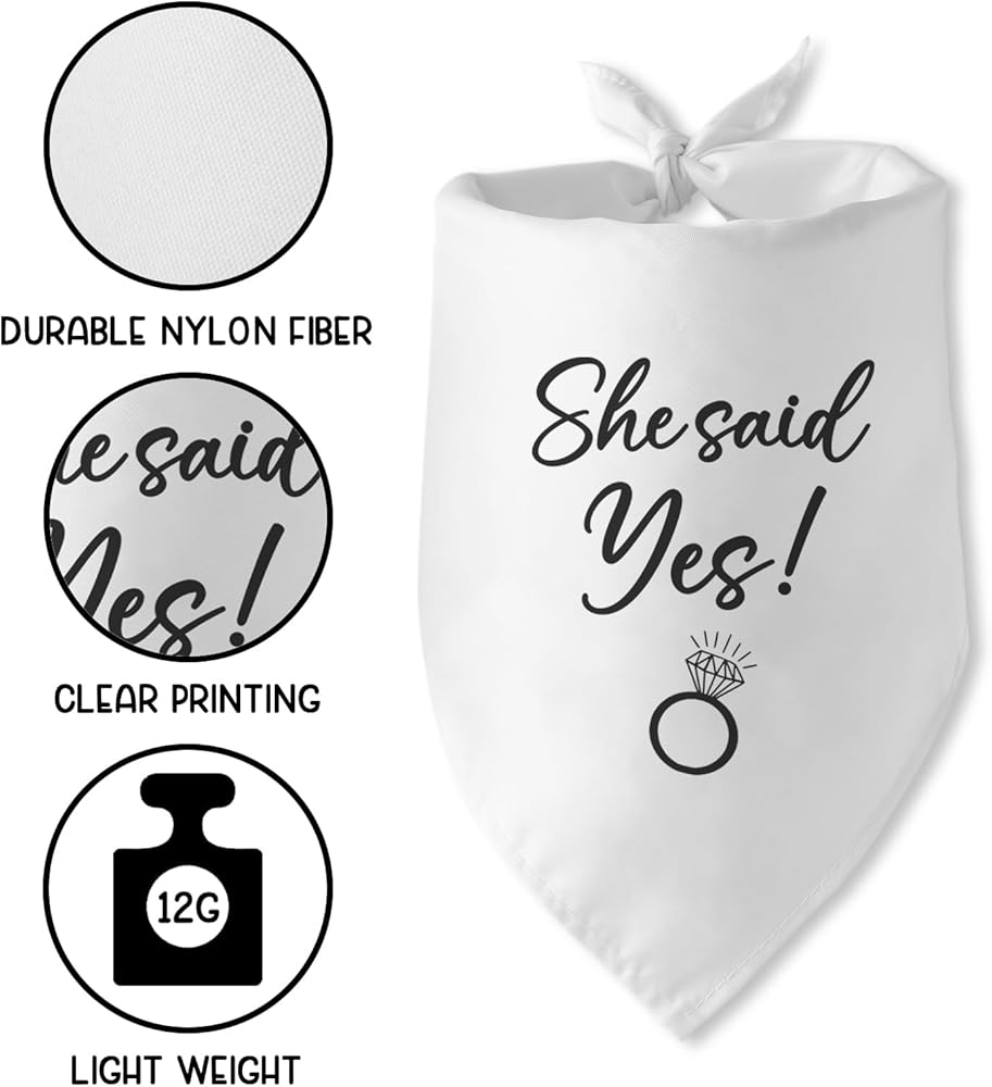 1.[Idea dog wedding outfit]:The dog bandana with :"she said yes " pattern, this is a idea engagement gift for pets at the wedding. It is very suitable engagement wedding gift of dog lovers.