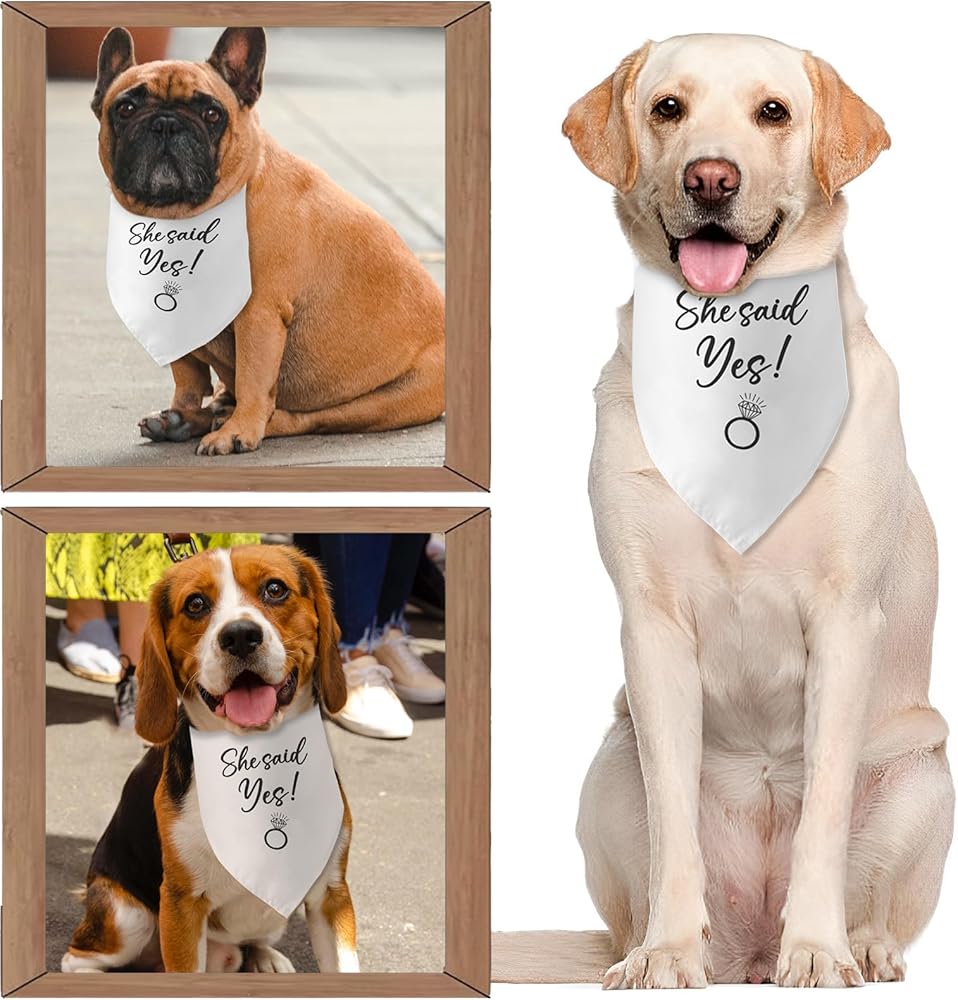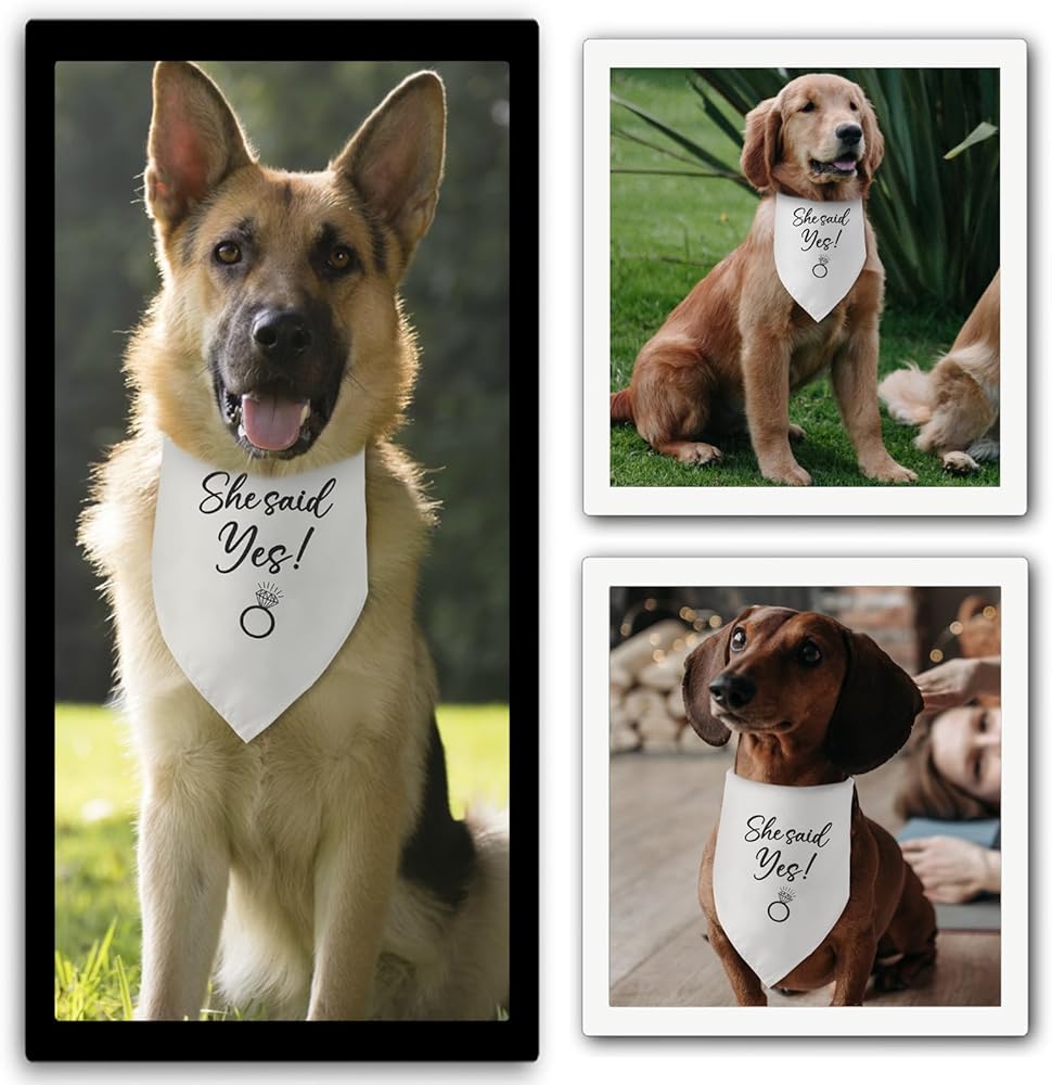 engagement gift she said yes dog bandana wedding outfit engagement triangle dog bandana wedding photo prop pet scarf dog engagement announcement pet accessories for dog pet lover