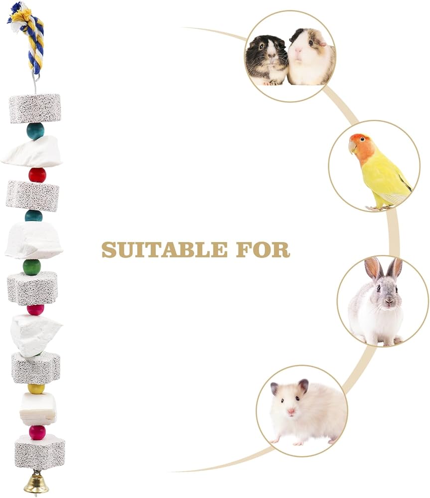 قابلة للتطبيق على نطاق واسع: لعبة مضغ الحيوانات الصغيرة الخاصة بنا مناسبة لمختلف الطيور، بما في ذلك الببغاوات والكوكاتو والببغاوات والببغاوات والببغاوات والدجاج. يمكن استخدامها أيضًا كلعبة تسنين للهامستر والجرذان والجربوع والقوارض والشنشيلا وغيرها من الحيوانات الصغيرة، مما يجعلها إضافة متعددة الاستخدامات لمجموعة ألعاب حيواناتك الأليفة.
