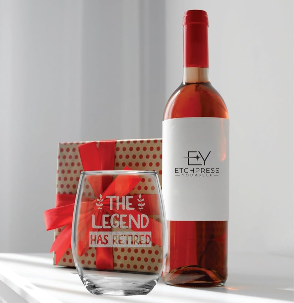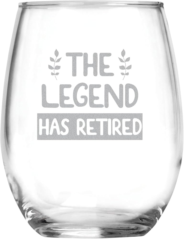 جودة فاخرة: مصنوع من زجاج عالي الجودة وخالي من الرصاص لضمان الوضوح والمتانة، مثالي للمناسبات الخاصة والاستخدام اليومي. تصميم أنيق: يتميز بالعبارة الاحتفالية "The Legend Has Retired" بخط أنيق وأنيق، محفور بشكل دائم لترك انطباع دائم. سعة كبيرة: تحمل ما يصل إلى 15 أونصة، مما يوفر مساحة واسعة للاستمتاع بالنبيذ الأحمر أو الأبيض أو الوردي.