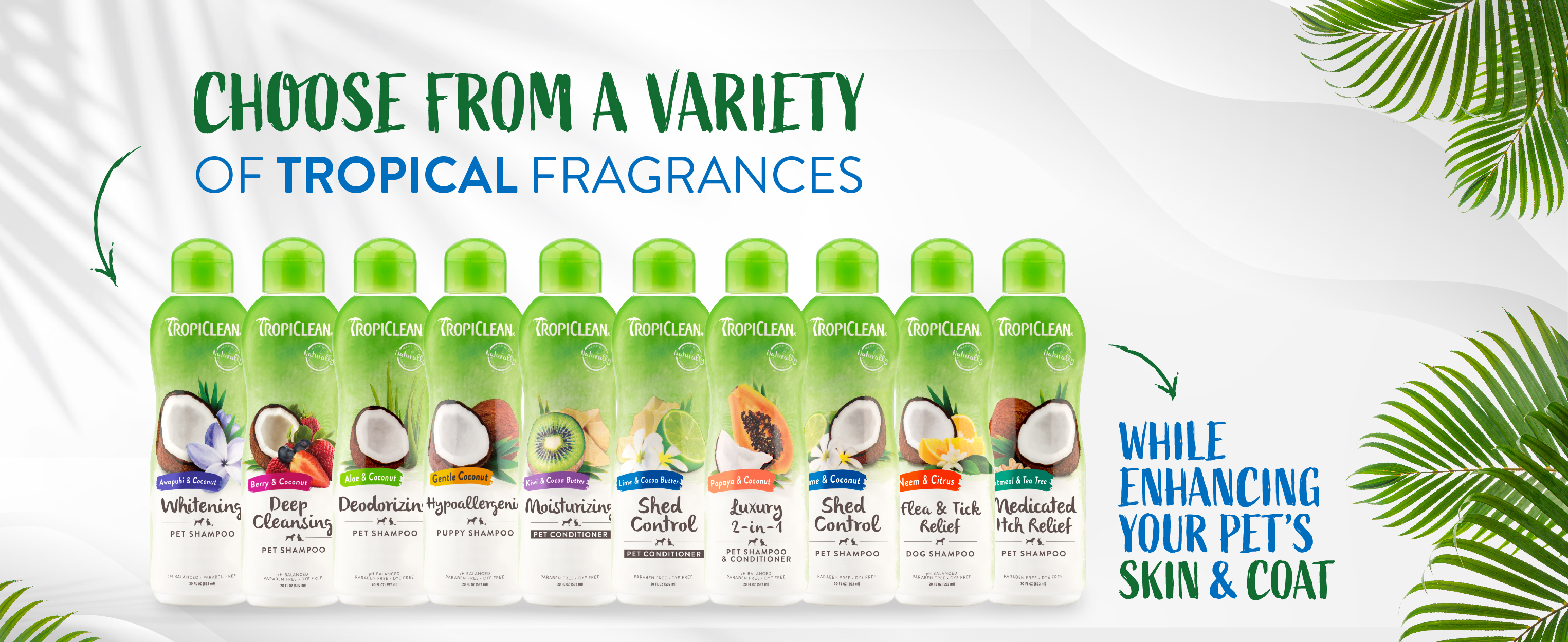 TropiClean - اجعل كل يوم يومًا سبا استوائيًا مع خطنا الكامل من المنتجات الصحية للحيوانات الأليفة. من المخلب إلى المعطف، ومن الذيل إلى الأنف، وكل شيء بينهما، أنت تصنع اللحظات، ونحن نجعلها منعشة.