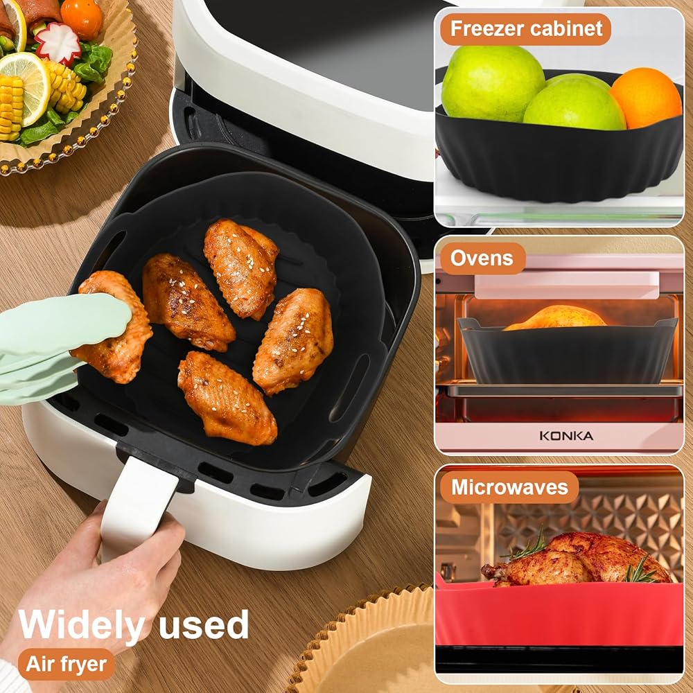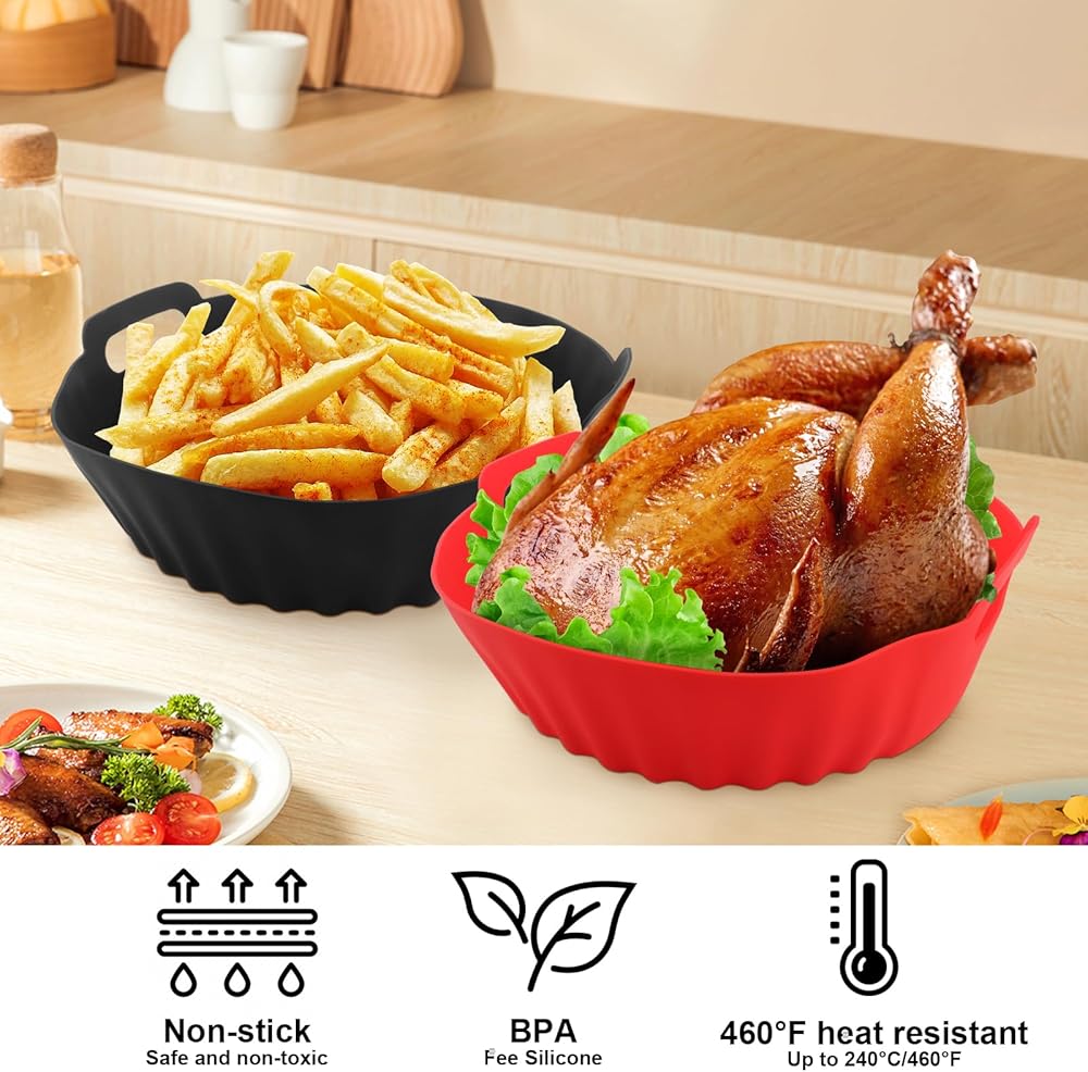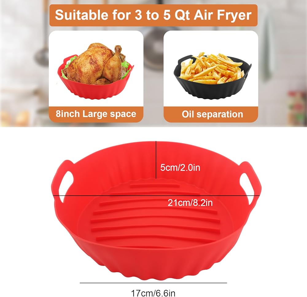 【Wide Application】These fryer silicone liners are a must-have kitchen accessory, suitable for air fryers, oven, and microwave, etc. You can also use it for baking, roasting, frying or holding food. (Let it cool before you remove it or use a pot holder because it does get hot)