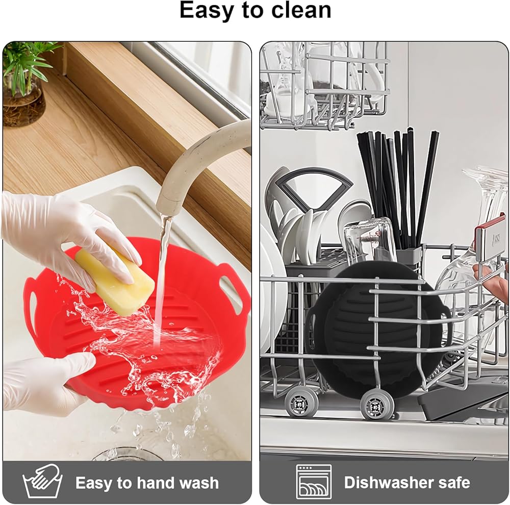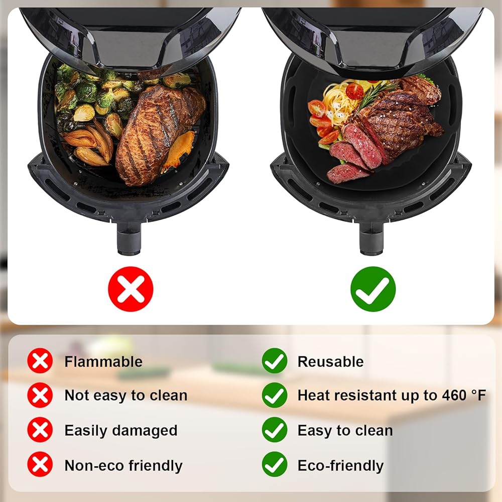 【Non-stick and Easy to Clean】Our silicone liners have many raised lines to ensure air circulation and even heat distribution to cook your foods to the perfection in less time. Plus, it is non-stick and helps with clean up and dishwasher safe, it also does not affect the service life of the air fryer.