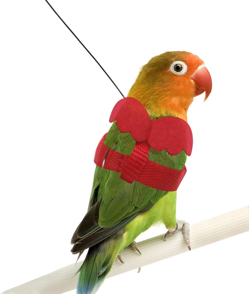 حزام ومقود طيور الببغاء للحيوانات الأليفة، طقم مقود من النايلون للطيور قابل للتعديل، حبال جر طويلة مع تصميم مضاد للعض، حبال تدريب على الطيران في الهواء الطلق مع جناح لطيف (أحمر) للحمام ومعظم الببغاوات