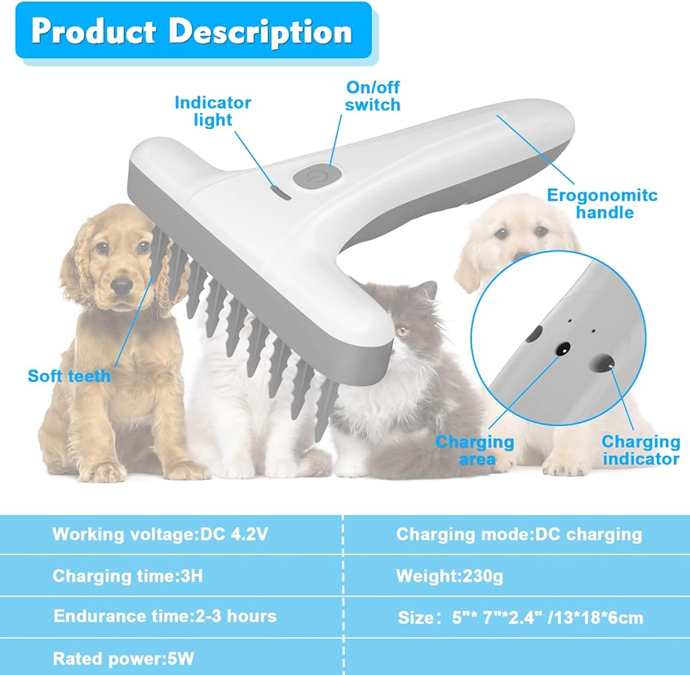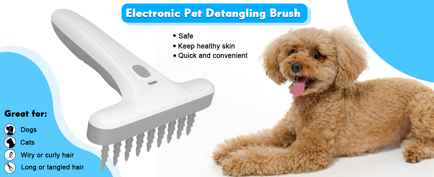فرشاة فك تشابك الشعر الكهربائية للحيوانات الأليفة: توفر معالجة احترافية للشعر المتشابك الذي لا يمكن فكه باستخدام مشط. هذه الفرشاة مناسبة للحيوانات الأليفة ذات الشعر الطويل أو المجعد أو غير اللامع.