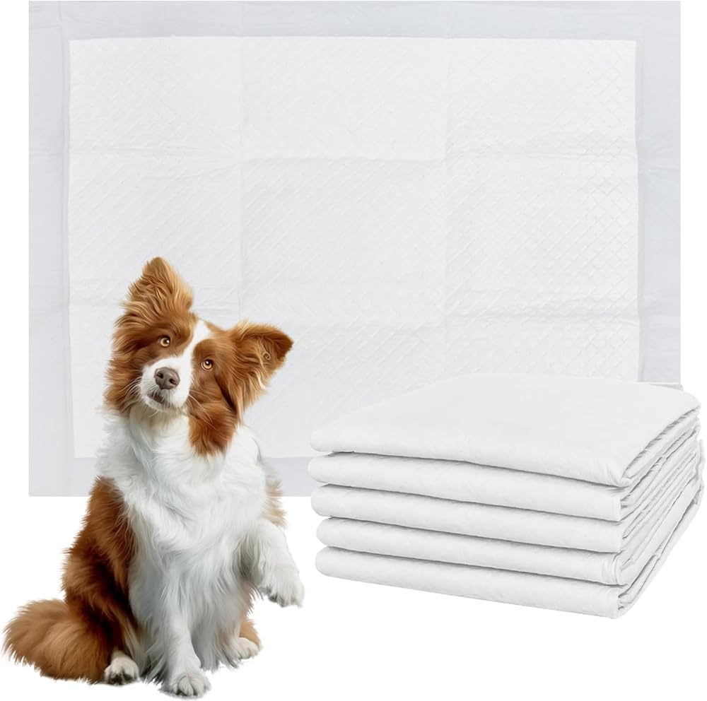 وسادات داخلية للاستعمال مرة واحدة بتصميم مقاوم للتسرب وسريع الجفاف لعلاج سلس البول، وسادات ماصة وغير قابلة للتسرب للكلاب والجراء للتدريب على استخدام المرحاض، عدد 5 وسادات حماية منزلية مقاس 24 × 24 بوصة - باللون الأبيض