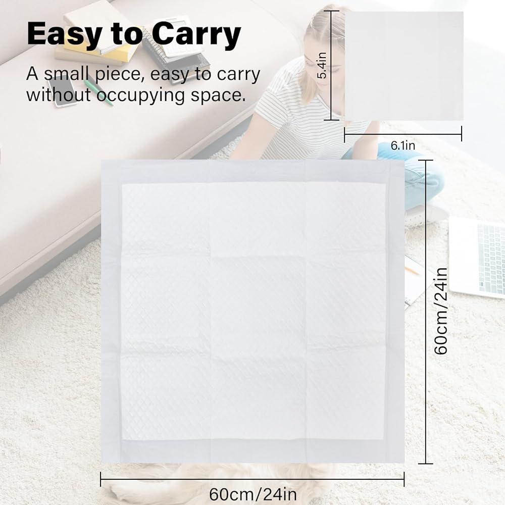 MULTIPURPOSE: Our pad have a wide range of uses, including training puppies pee and potty, underpads for adults with incontinence, and changing pads for newborns.The 24 x 24 inch large-sized pet pad can be suitable for dogs of any size, especially large dogs, so don't worry about getting your floor dirty because the pad is too small.