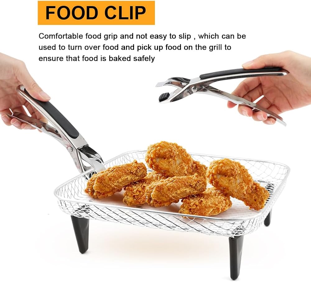 【Anti-Scalding Clip】Anti-scald clips are included in the package for easy access to the air fryer rack without getting burned. The clips are made of silicone and stainless steel with a non-slip texture for easy use.