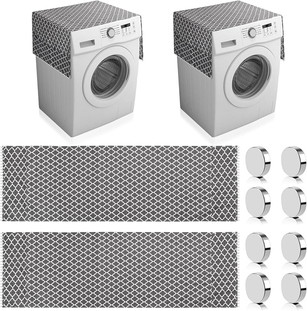 مجموعتان من غطاء الغسالة والمجفف مقاس 51.2 × 21.6 بوصة للجزء العلوي، غطاء غسالة مغناطيسي مانع للانزلاق، غطاء غسالة مضاد للانزلاق مع أكياس تخزين، غطاء مقاوم للغبار مع جيوب للغسيل