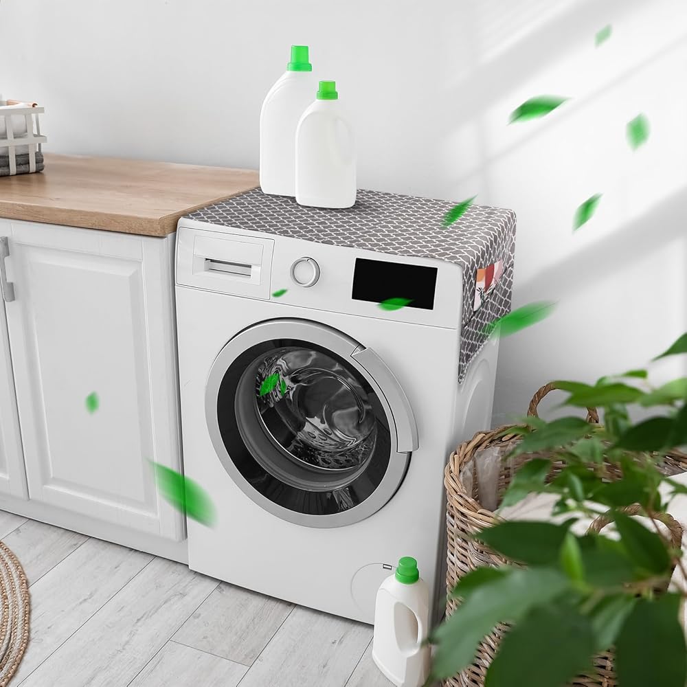 • تخزين مريح: يأتي الغطاء العلوي للغسالات والمجففات مع جيوب تخزين، مما يسمح لك بإبقاء غرفة الغسيل الخاصة بك في متناول اليد. لا مزيد من البحث عن المنظفات أو أوراق المجفف في غير مكانها. لاحظ أنه لا يمكن حمل الأشياء الثقيلة!