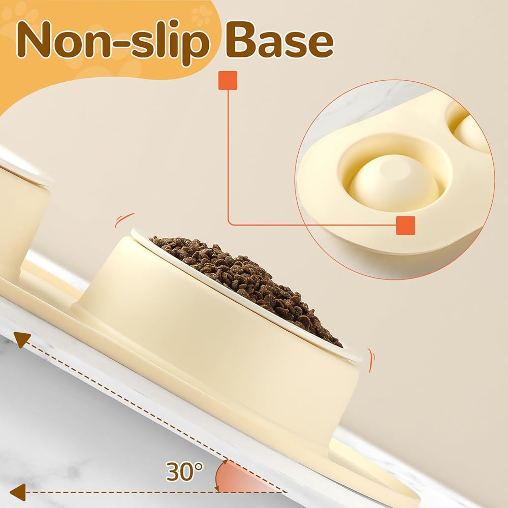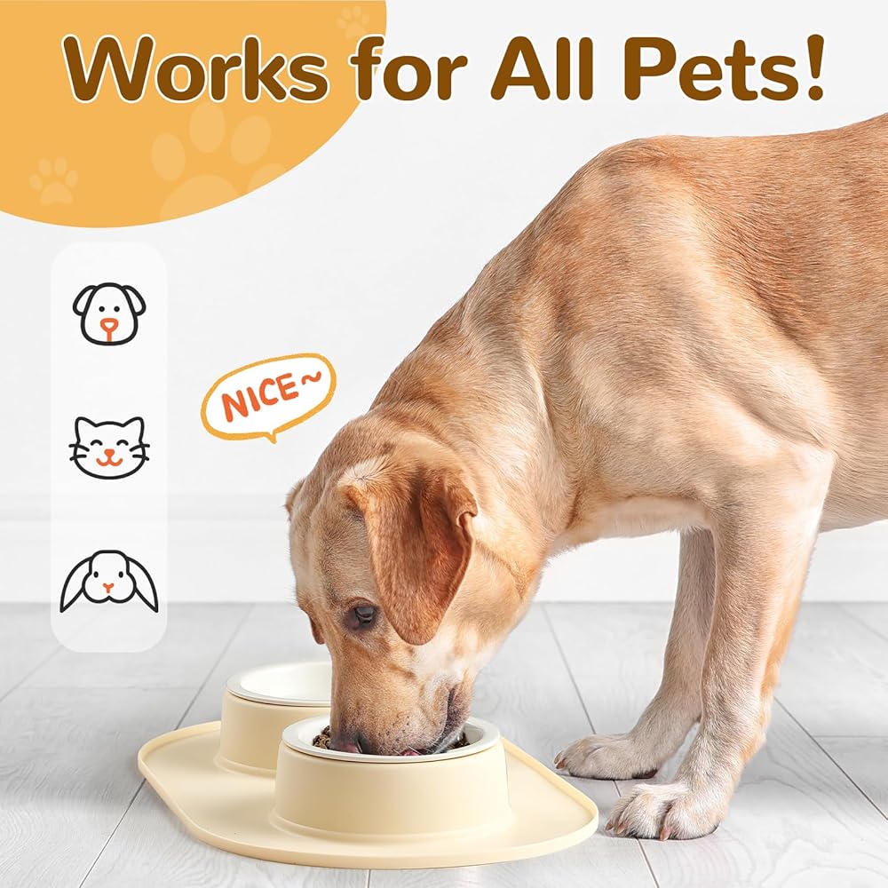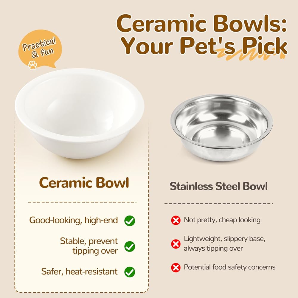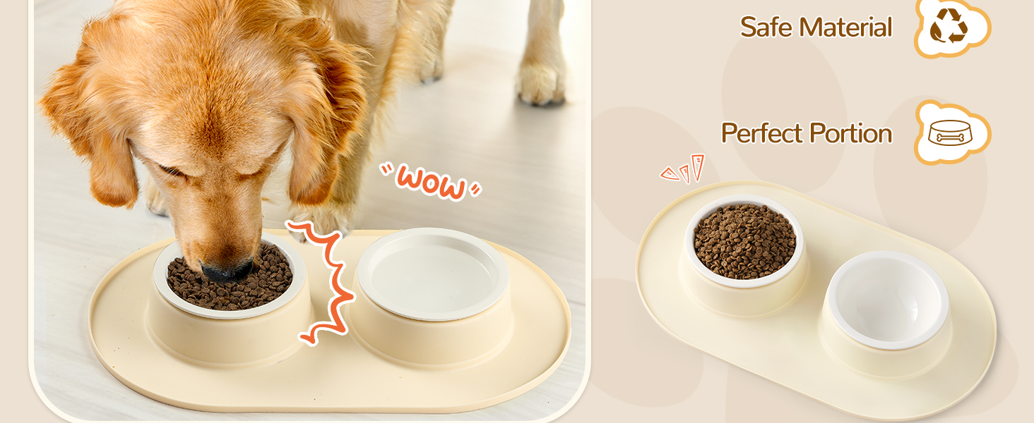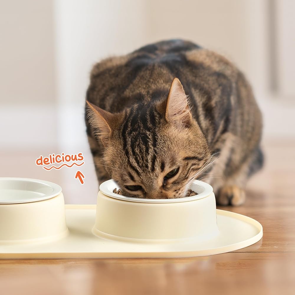 • سيراميك عالي الجودة: مصنوعة من السيراميك عالي الجودة، أوعيةنا متينة وقوية. على عكس الأوعية المصنوعة من الفولاذ المقاوم للصدأ، توفر أوعية السيراميك لدينا بيئة تناول طعام مستقرة، مما يمنعها من التحرك أثناء وقت الطعام وتعزز عادات الأكل الصحية لدى حيواناتك الأليفة. بالإضافة إلى ذلك، تحافظ الألوان المتطورة للأوعية الخزفية وحصيرة السيليكون على جو أنيق في منزلك.