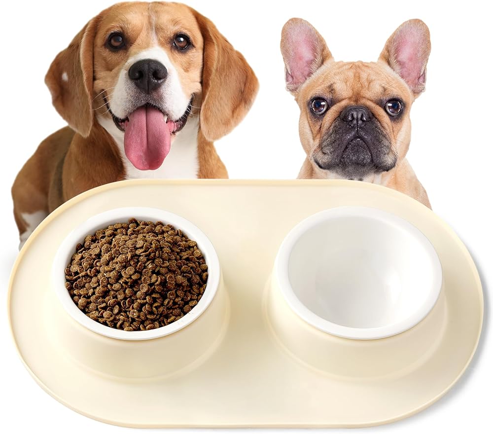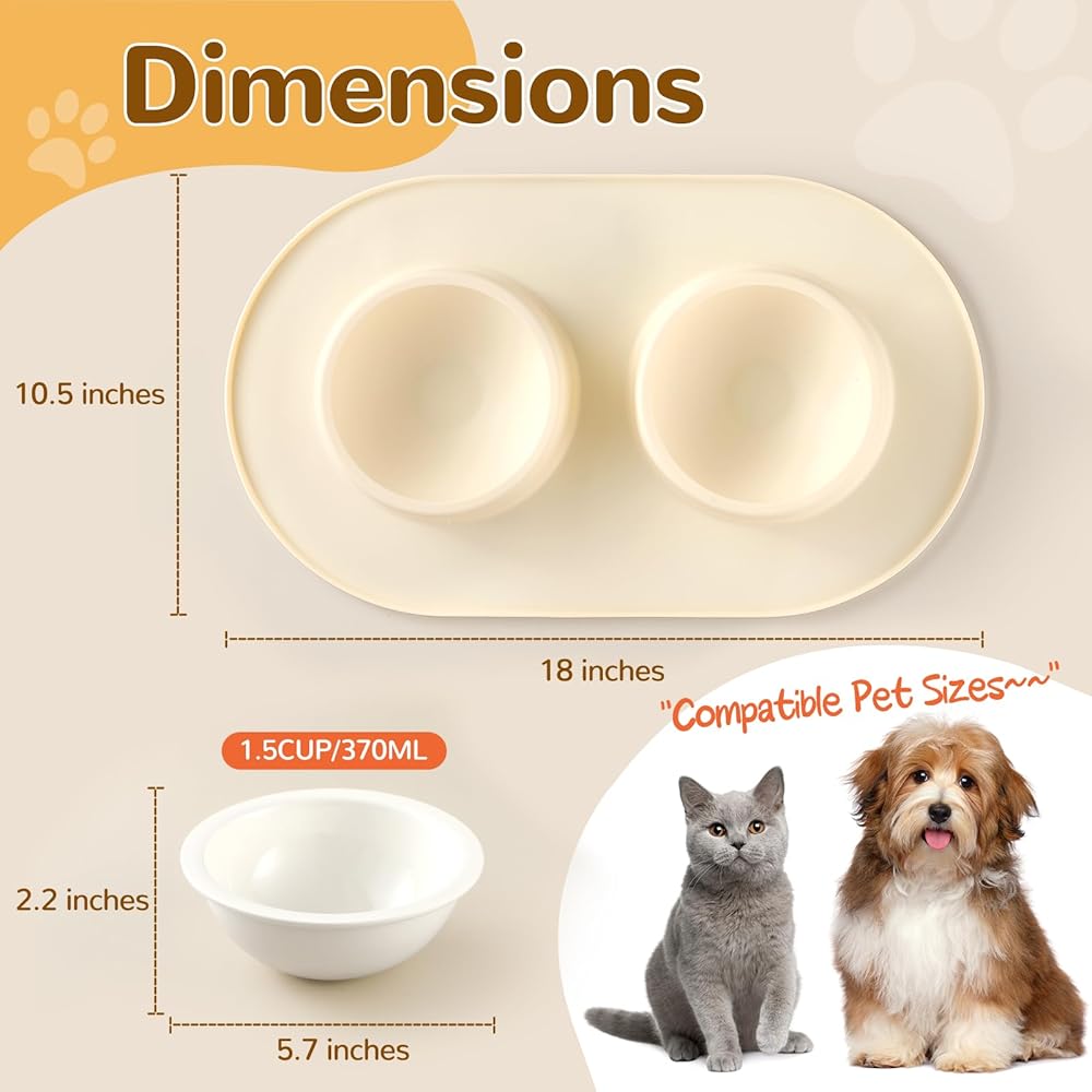 وعاء للحيوانات الأليفة سعة 1.5 كوب مع مجموعة حصيرة، ووعاءان من السيراميك للكلاب صغيرة الحجم، وبساط تغذية للكلاب مصنوع من السيليكون المقاوم للماء وغير قابل للانزلاق، ووعاء طعام للكلاب الصغيرة، ومستلزمات الكلاب، وإكسسوارات الحيوانات الأليفة، وخالية من مادة