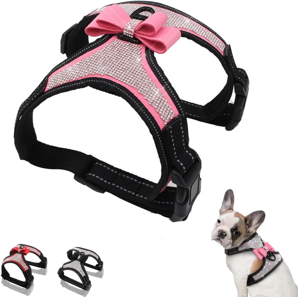 【 Pet Harness Collars】: Bling Rhinestone & Cute Bowknot