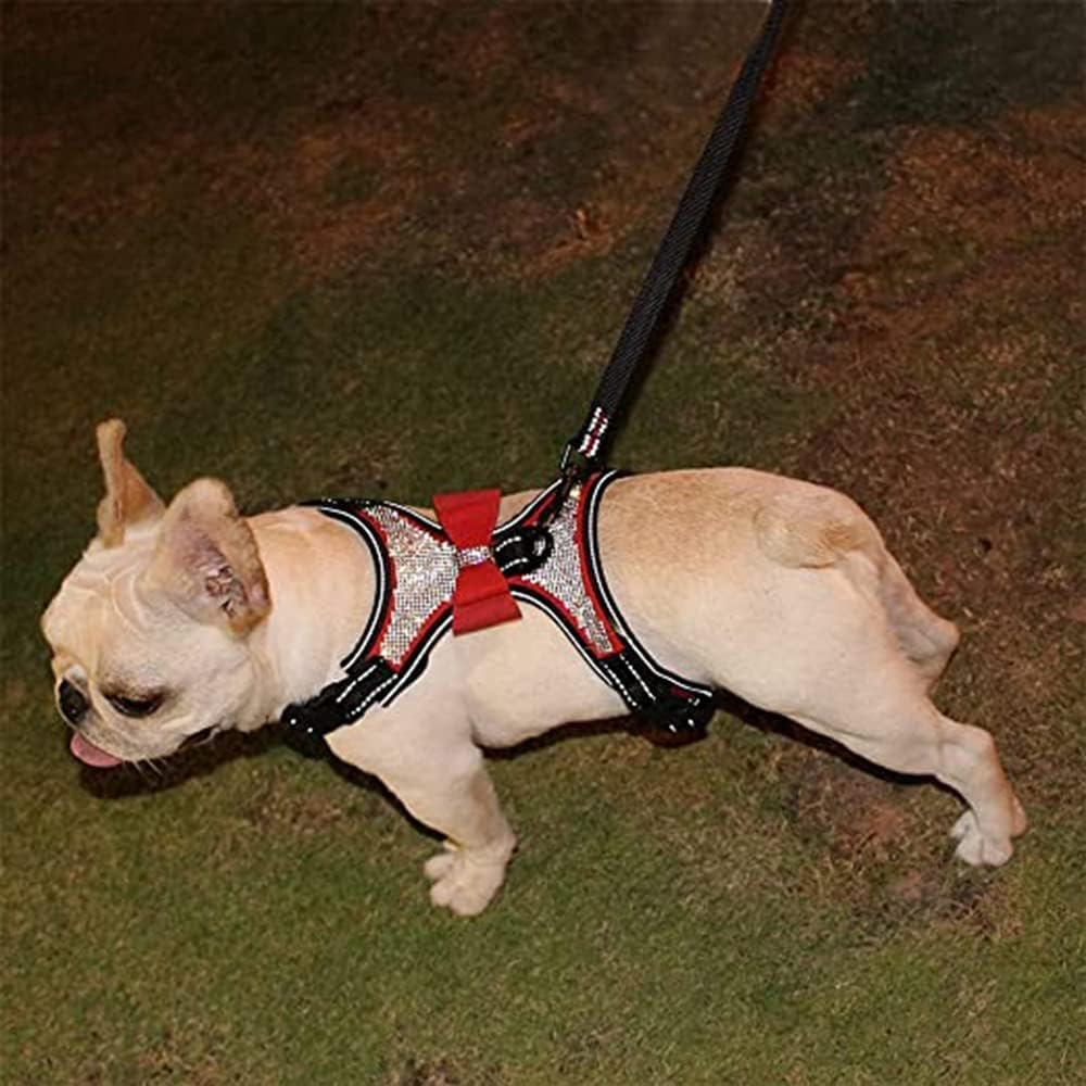 حجر الراين الكلب تسخير والمقود مجموعة بلينغ كريستال نايلون عاكس لينة لطيف جرو طوق سترة الماس قابل للتعديل مع ربطة عنق سباركلي للكلاب الصغيرة المتوسطة الكبيرة القطط الحيوانات الأليفة الأولاد والبنات أسود M