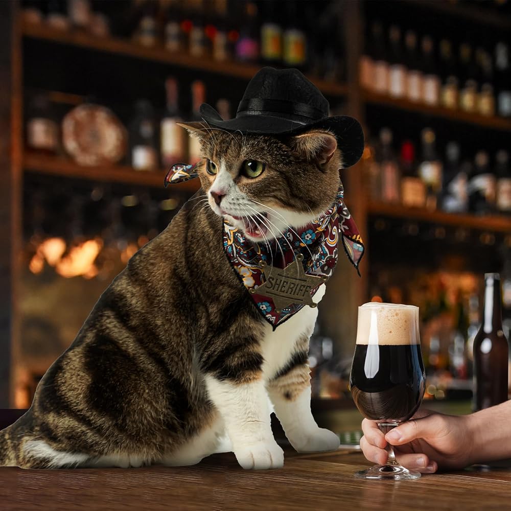 تشمل العبوة: تشمل منتجاتنا 1 × قبعة رعاة البقر، 1 × منديل بني، 1 × شارة شريف. إنها أيضًا أفضل هدية للعائلة أو الأصدقاء الذين لديهم كلاب أو قطط.
