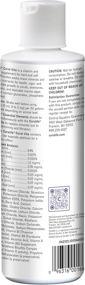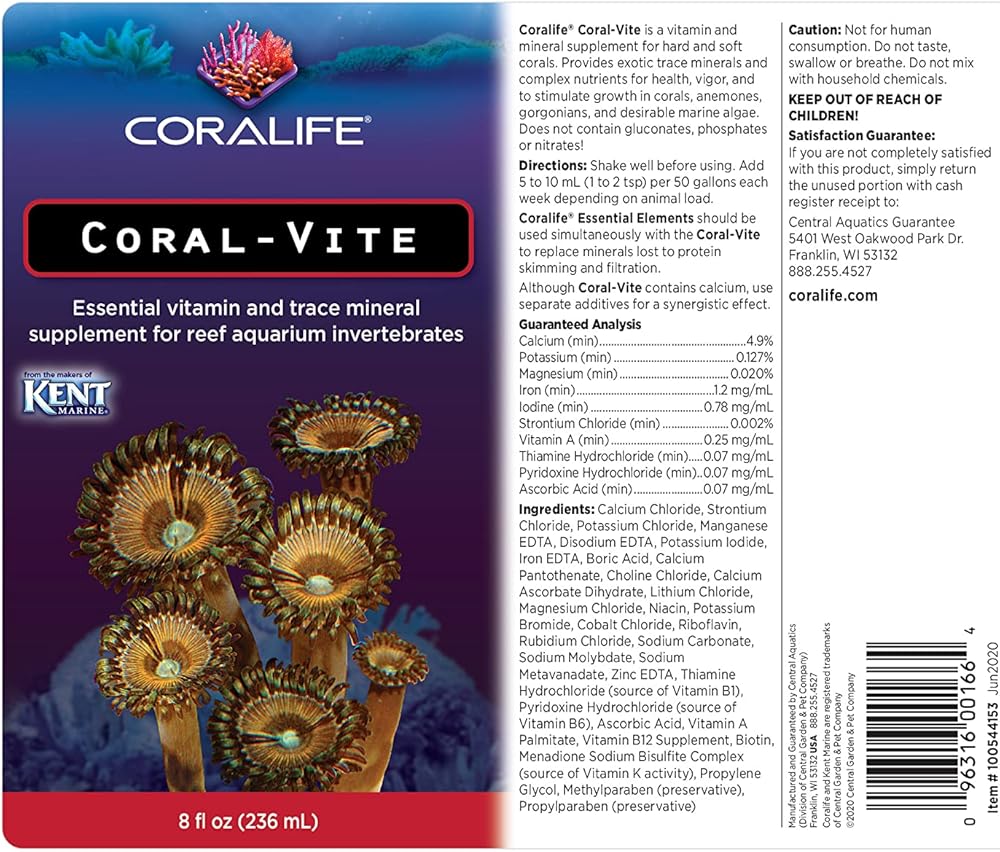 Coralife Coral-Vite is a vitamin and mineral supplement for hard and soft corals