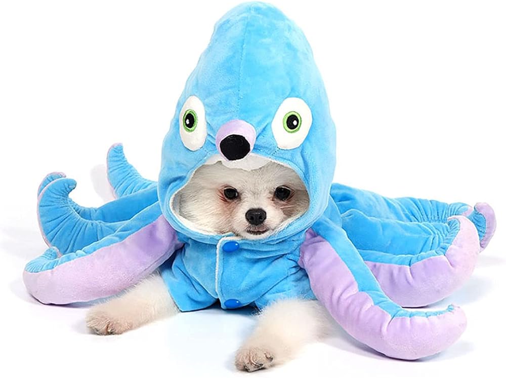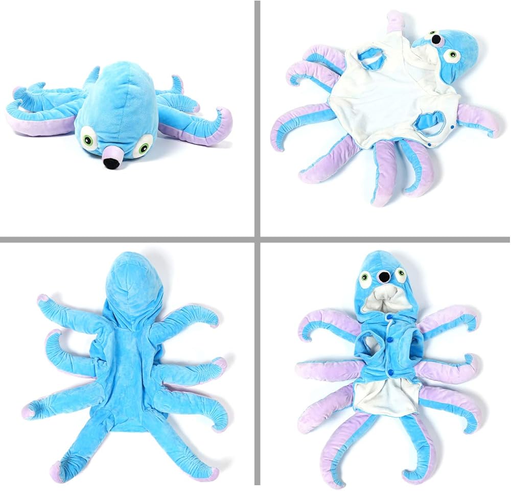 جودة عالية: زي الحيوانات الأليفة هذا مصنوع من نسيج مخملي ناعم وبطانة من الصوف القطبي. رأس الأخطبوط محشو بالقطن عالي الجودة. صديق للبشرة، يجعل الكلب يشعر بالراحة والدفء طوال اليوم.