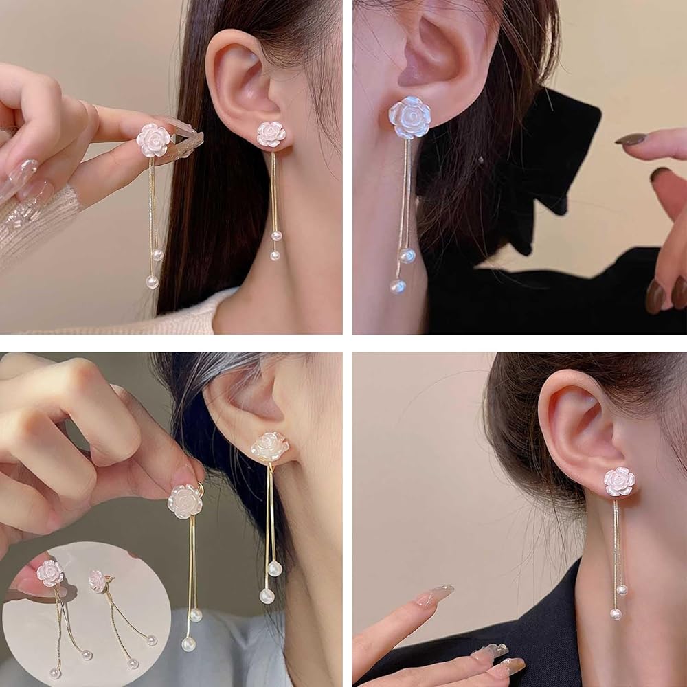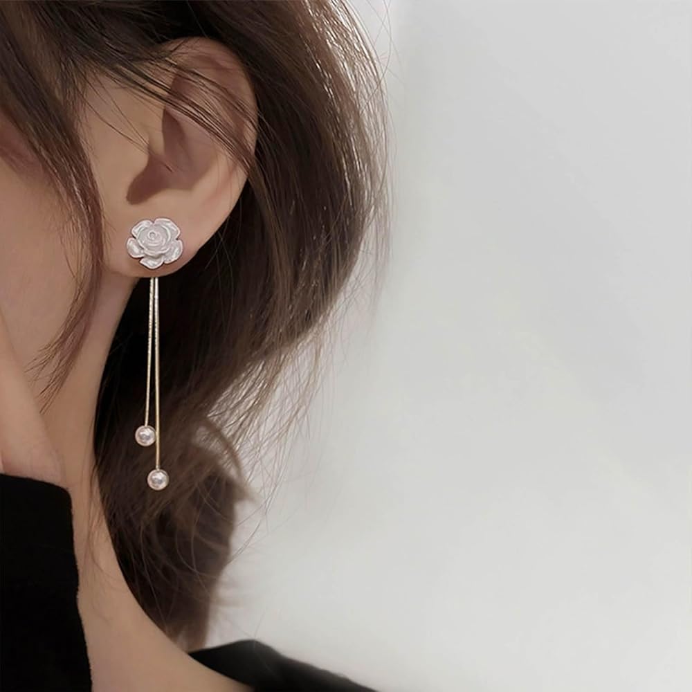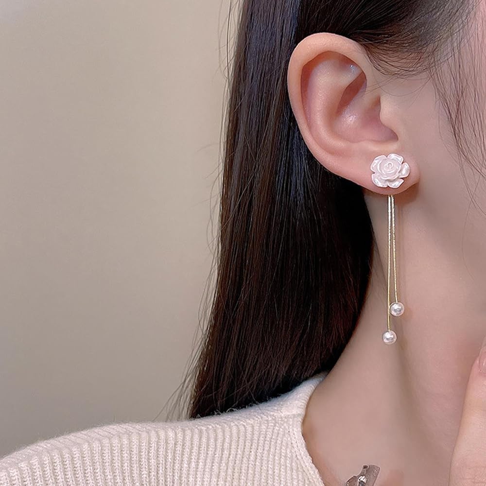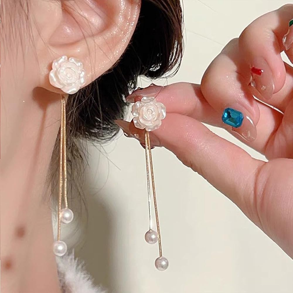 Unique Design:This is a pair of flower ear jacket earrings,composed of pearl and white rose flower elements,unique and dainty design,definitely it will be the most suitable fashion item for you.