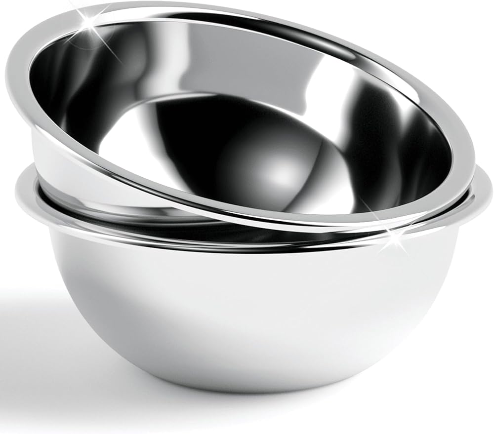 HEAVY DUTY STAINLESS STEEL: constructed from durable, rust and dent resistant stainless steel for long lasting use, heat resistant and perfect for serving both warm and cold foods, plus, the polished bottom of the bowl is naturally water and stain resistant, so your bowls will stay looking great, use after use.