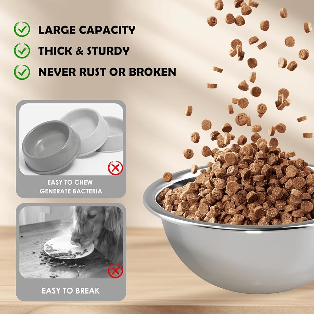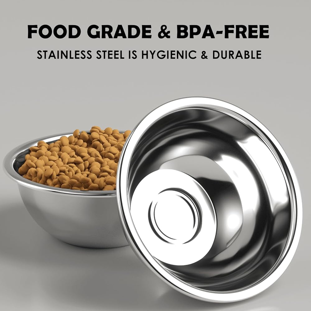 FOOD GRADE AND BPA FREE: constructed from rust resistant, food grade stainless steel, these bowls are perfect for your pet, stainless steel is nonporous and longer lasting than plastic, bowls are FDA compliant and tested to comply with US regulations, dishwasher safe.