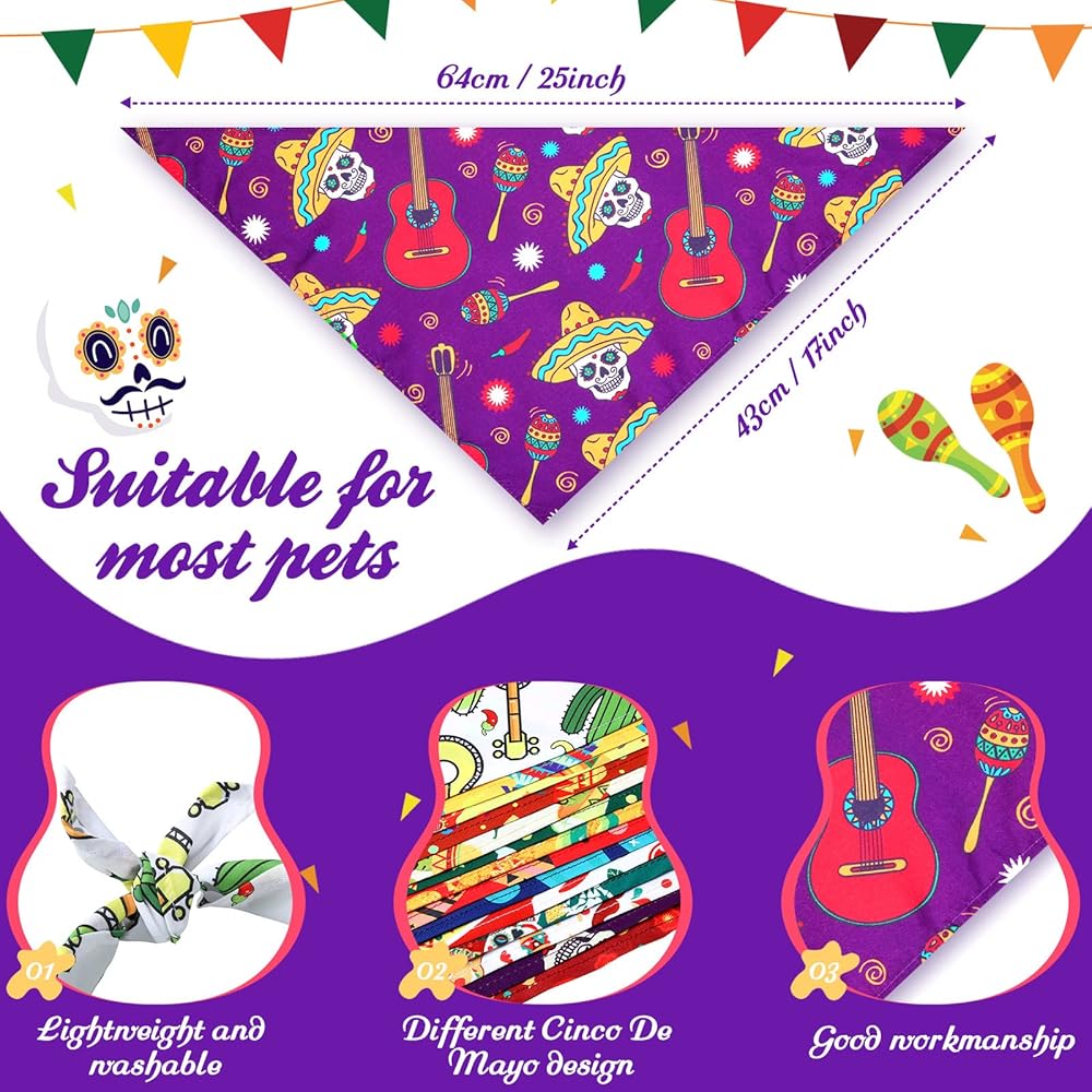 • Cinco De Mayo Day Dog Scarf: our dog bandanas are printed with a variety of designs on the surface, such as cactus, pinata, guitar, maraca, taco and more, classic fiesta elements, full of festive atmosphere, the ideal way to dress up your pet