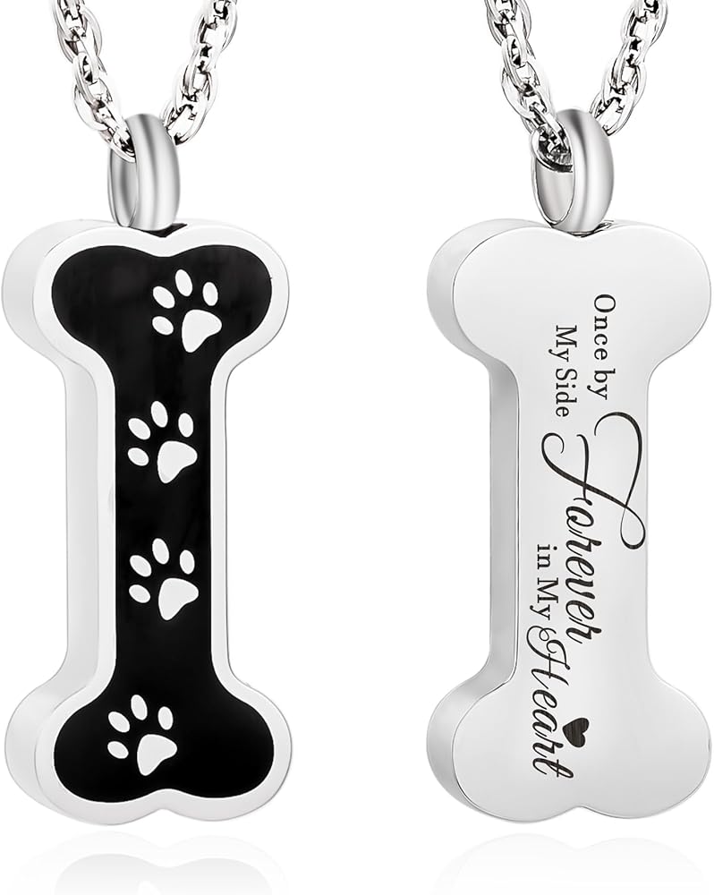 ✅تصميم جميل: تم تصميم قلادة الجرة هذه من مفهوم شكل عظمة، مع عبارة "Once by My Side Forever in My Heart" عليها - تصميم بسيط مع 4 مطبوعات مخالب على المقدمة يضيف الأناقة إلى المجوهرات.