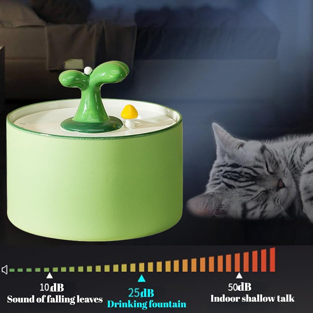 【هادئة للغاية】: نافورة وعاء الماء هادئة جدًا، يستخدم أحدث جيل من المضخة تقنية محرك فريدة من نوعها هادئة للغاية (25 ديسيبل) وتعمل باستهلاك منخفض 3 وات.