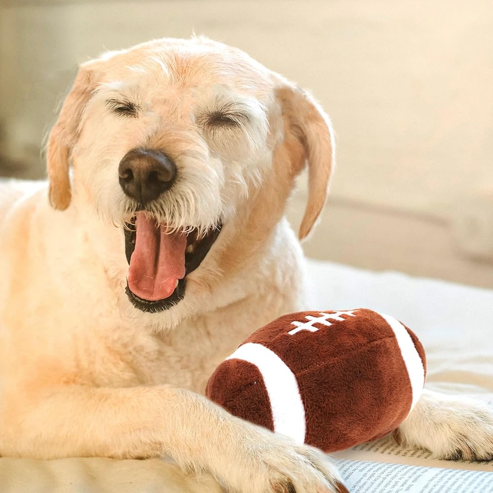 لعبة مضغ مثيرة للاهتمام-- 🏉يمكن استخدام هذه الكرة القطيفة في اللعب الخارجي والداخلي، مما يحافظ على نشاط حيواناتك الأليفة بدنيًا.